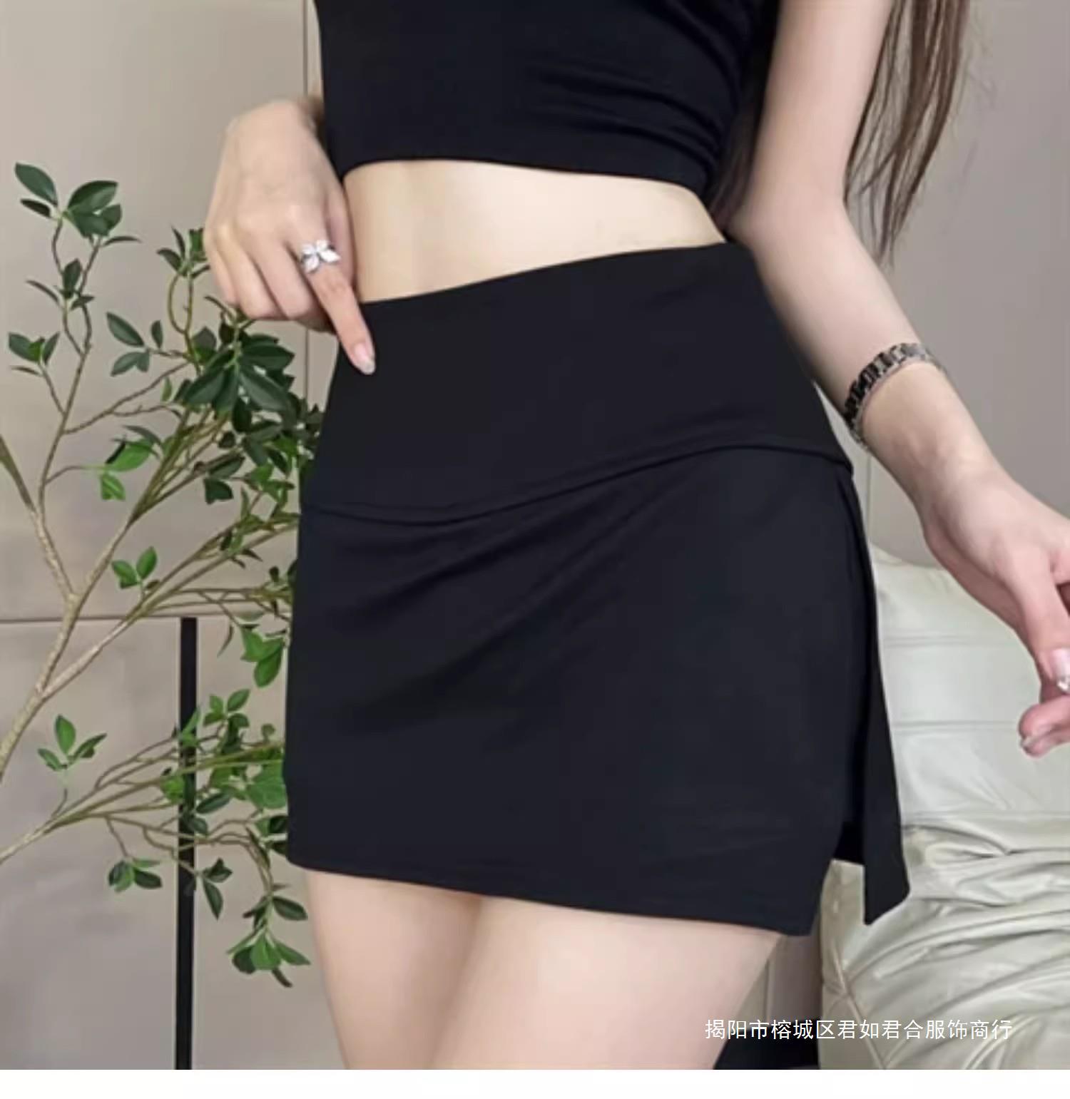 黒い夏の高腰側のフォークヨガのズボンのスカートの女性の光を防ぐアメリカのデザイン感a字の運動はお尻のスカートを包みます。