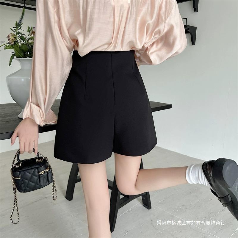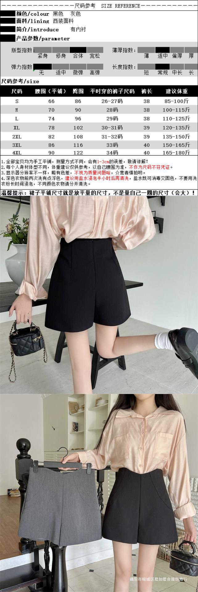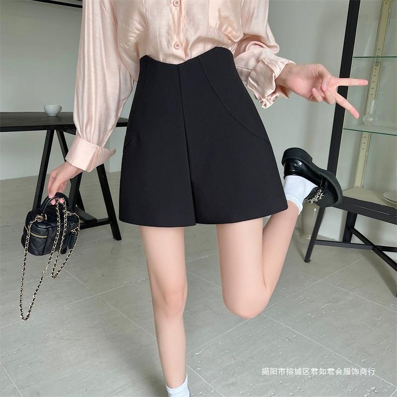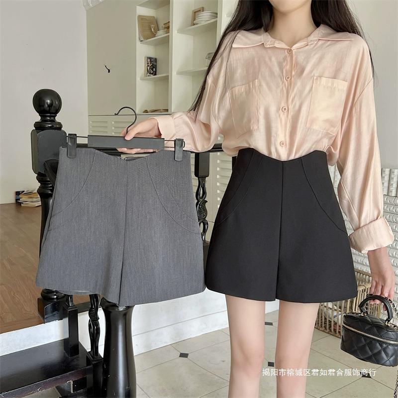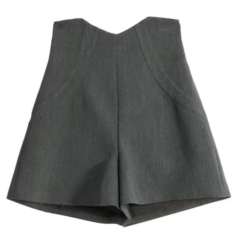 ハイウエストの黒いスーツの半ズボンの女性2025の新型の春夏の外は灰色のA字の広い足を着て痩せているカジュアルなズボンのホットパンツを現します。