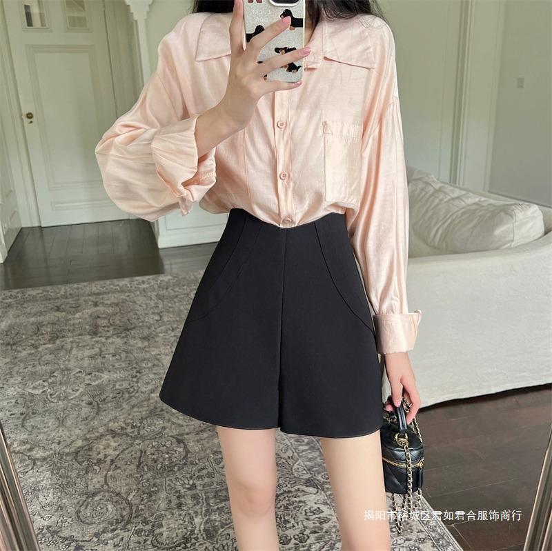 スーツグレースカートレディース2025年夏新作ヒップカバーショートスカートブラックハイウエストショートスカート