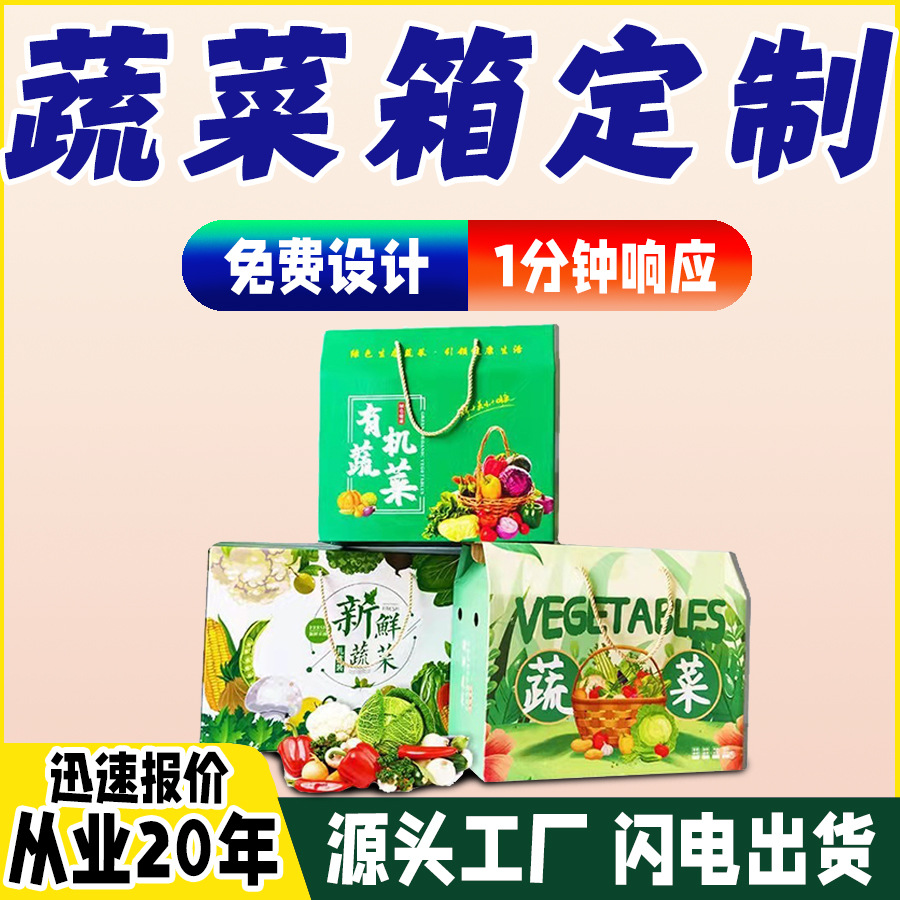 蔬菜包装盒果蔬通用礼盒空盒子超大容量田园绿创意手提礼品盒批发