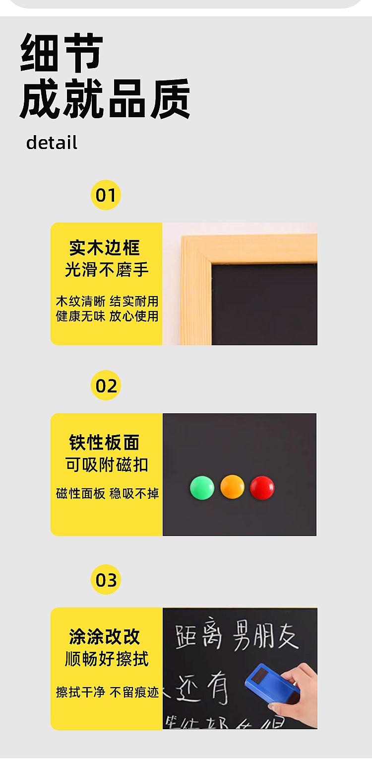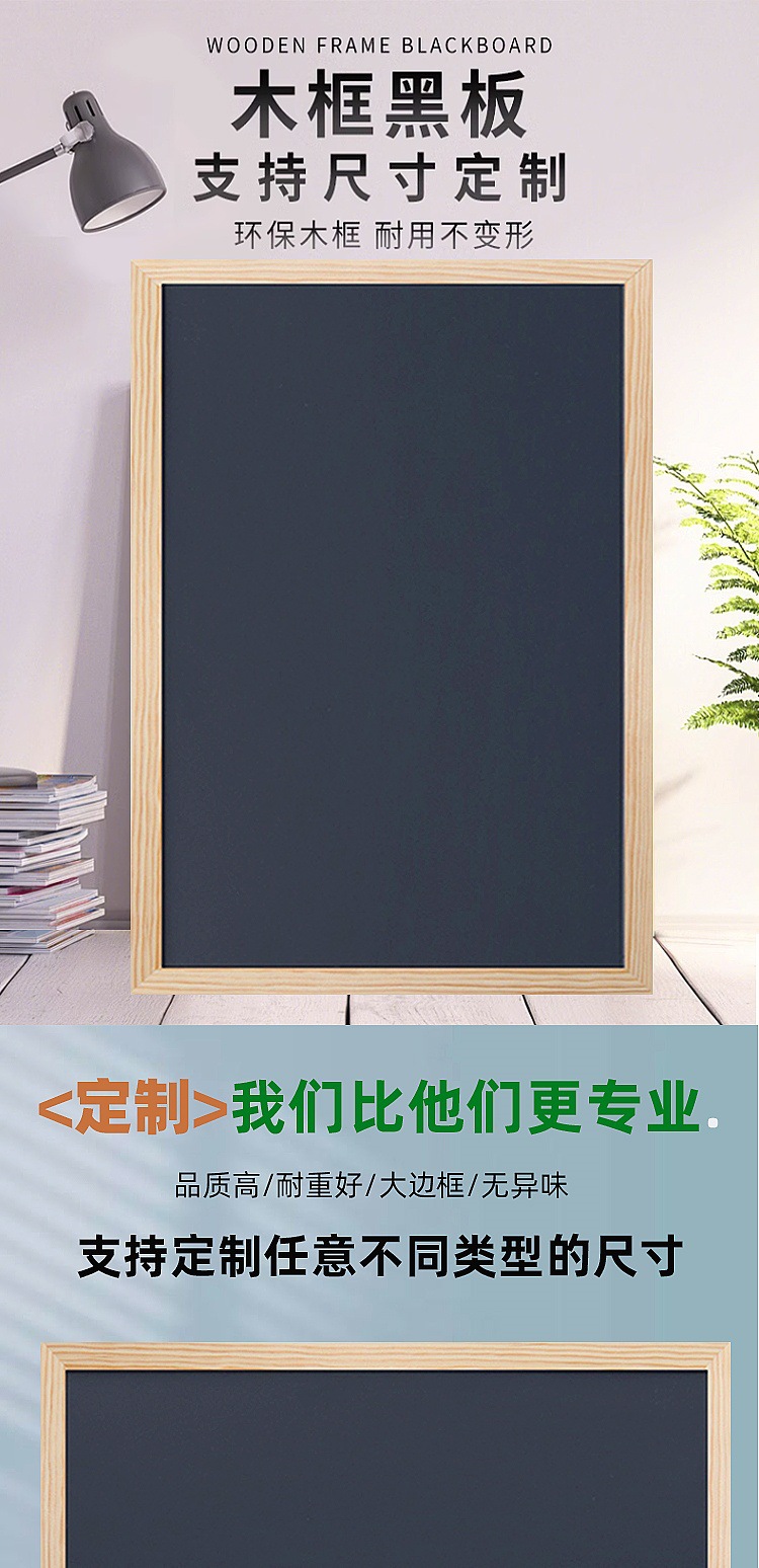 木枠小黒板家庭用教育児童落書き黒板片面掛式黒板筆記掲示板50x70cm