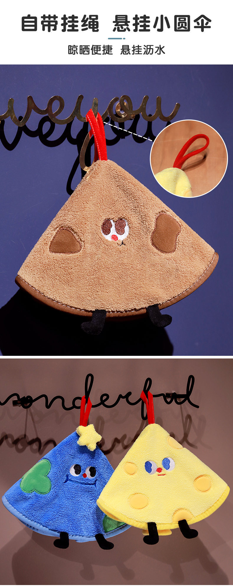 网红爆款小雨伞擦手巾家用厨房浴室可挂式擦手毛巾珊瑚绒加厚吸水