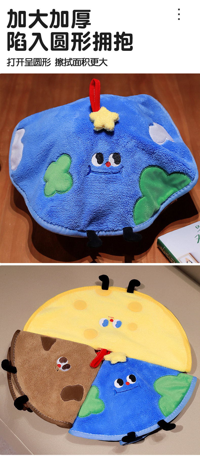 卡通毛巾圆形地球芝士曲奇擦手巾珊瑚绒小圆巾挂式厨房卫生间