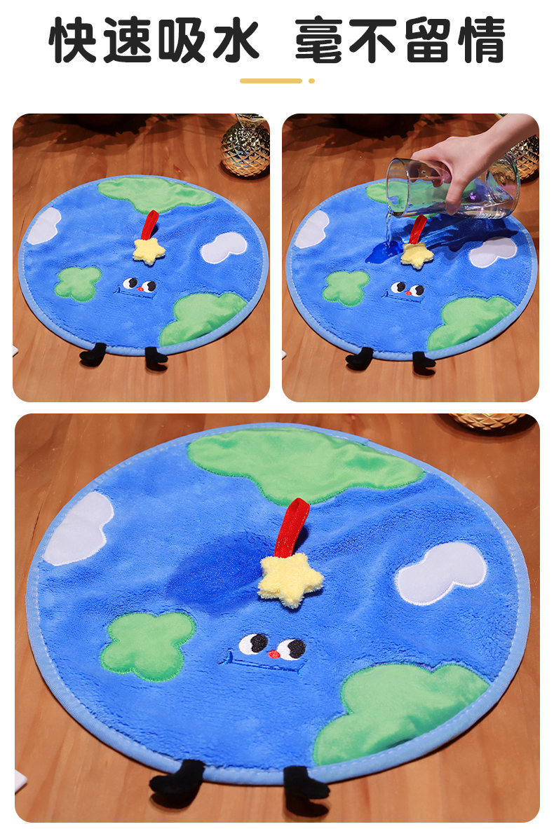 卡通圆形地球芝士曲奇擦手巾珊瑚绒小圆巾挂式厨房卫生间小毛巾