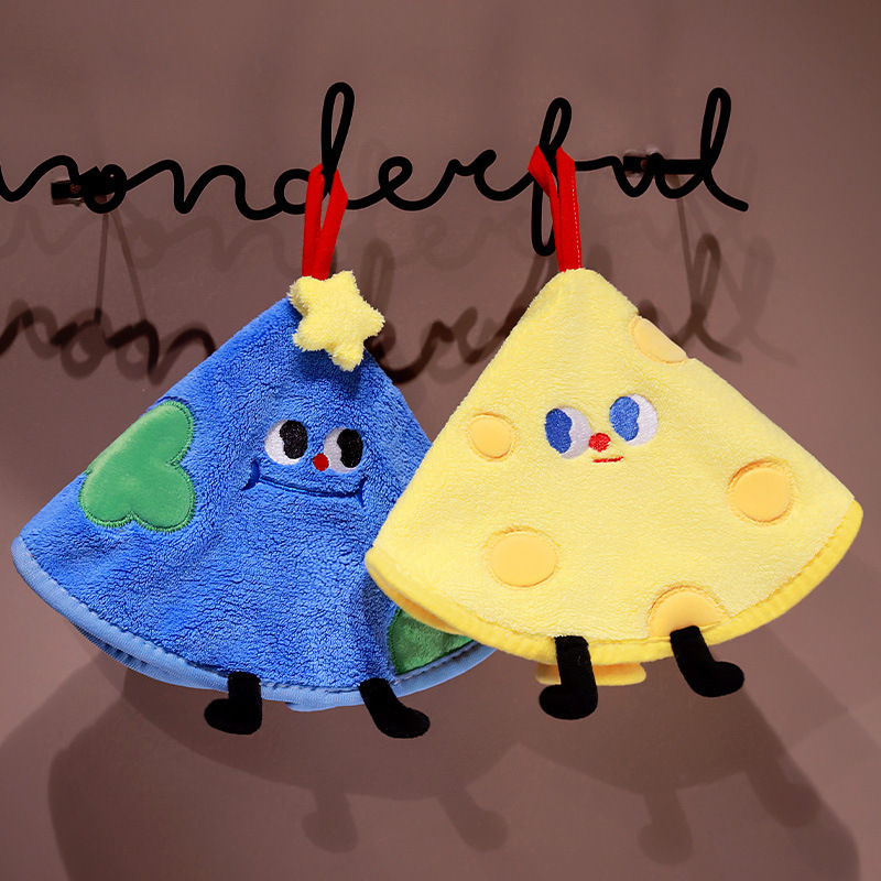 漫画かわいい丸い地球チーズクッキーおしぼりコーラルフリース吊り下げ式子供キッチントイレ小さなタオル