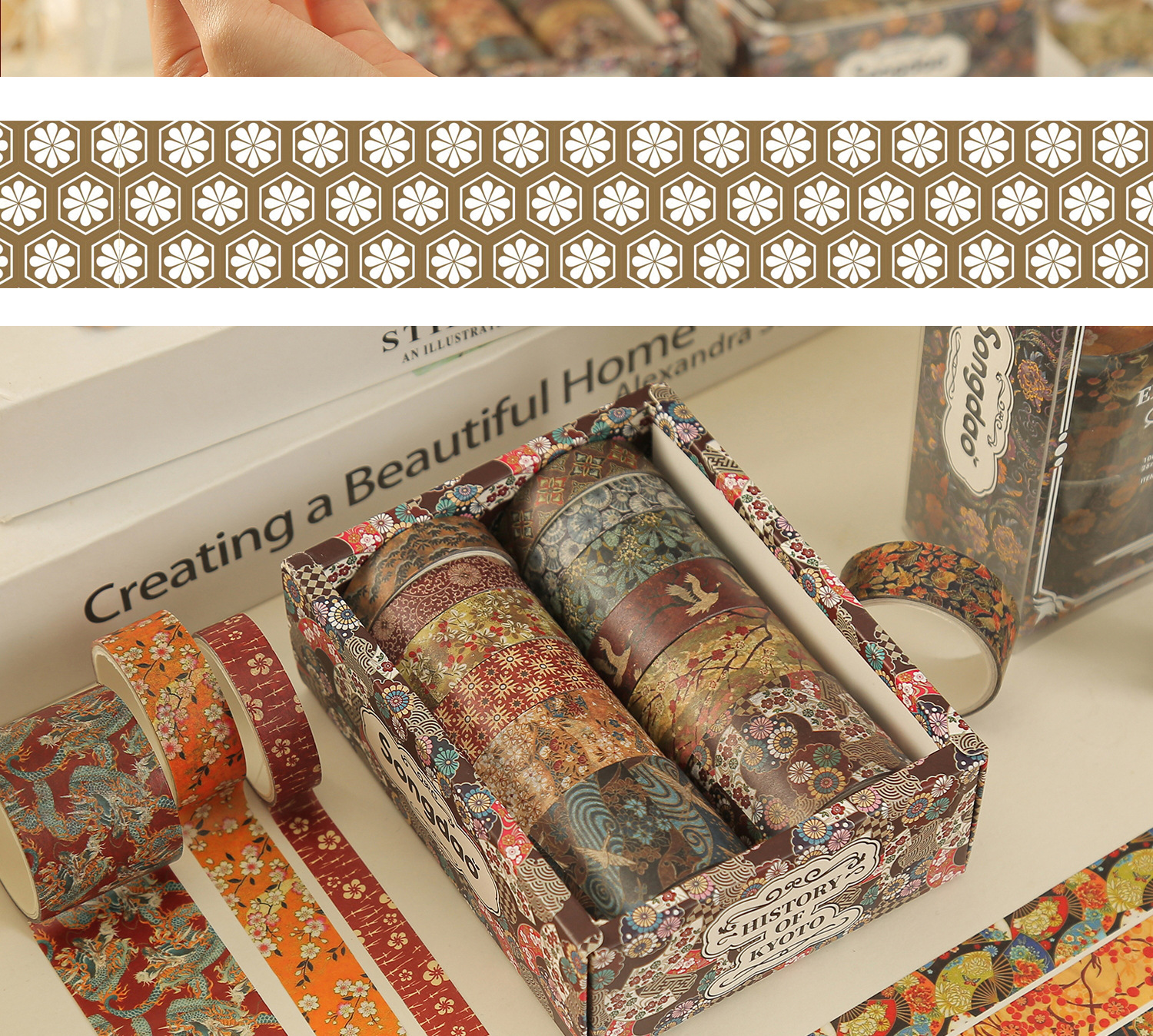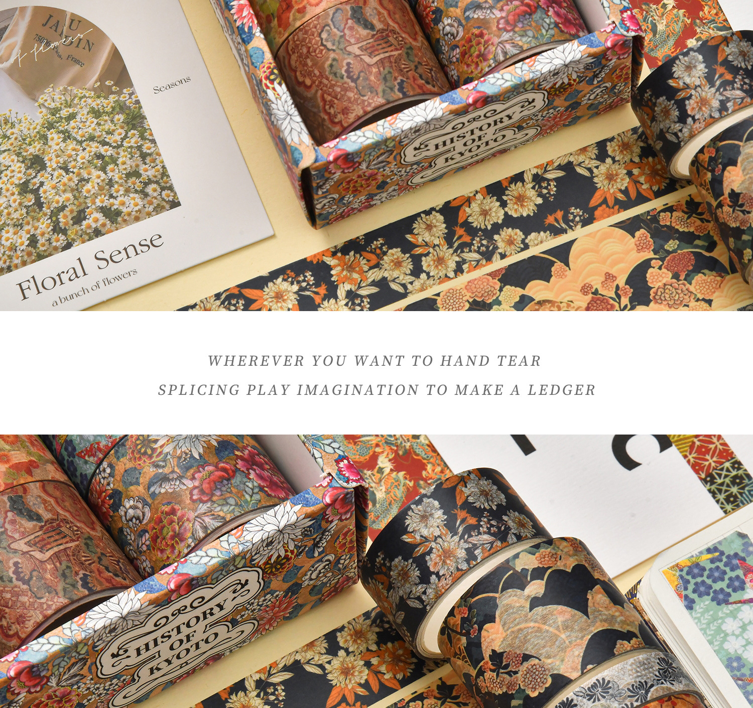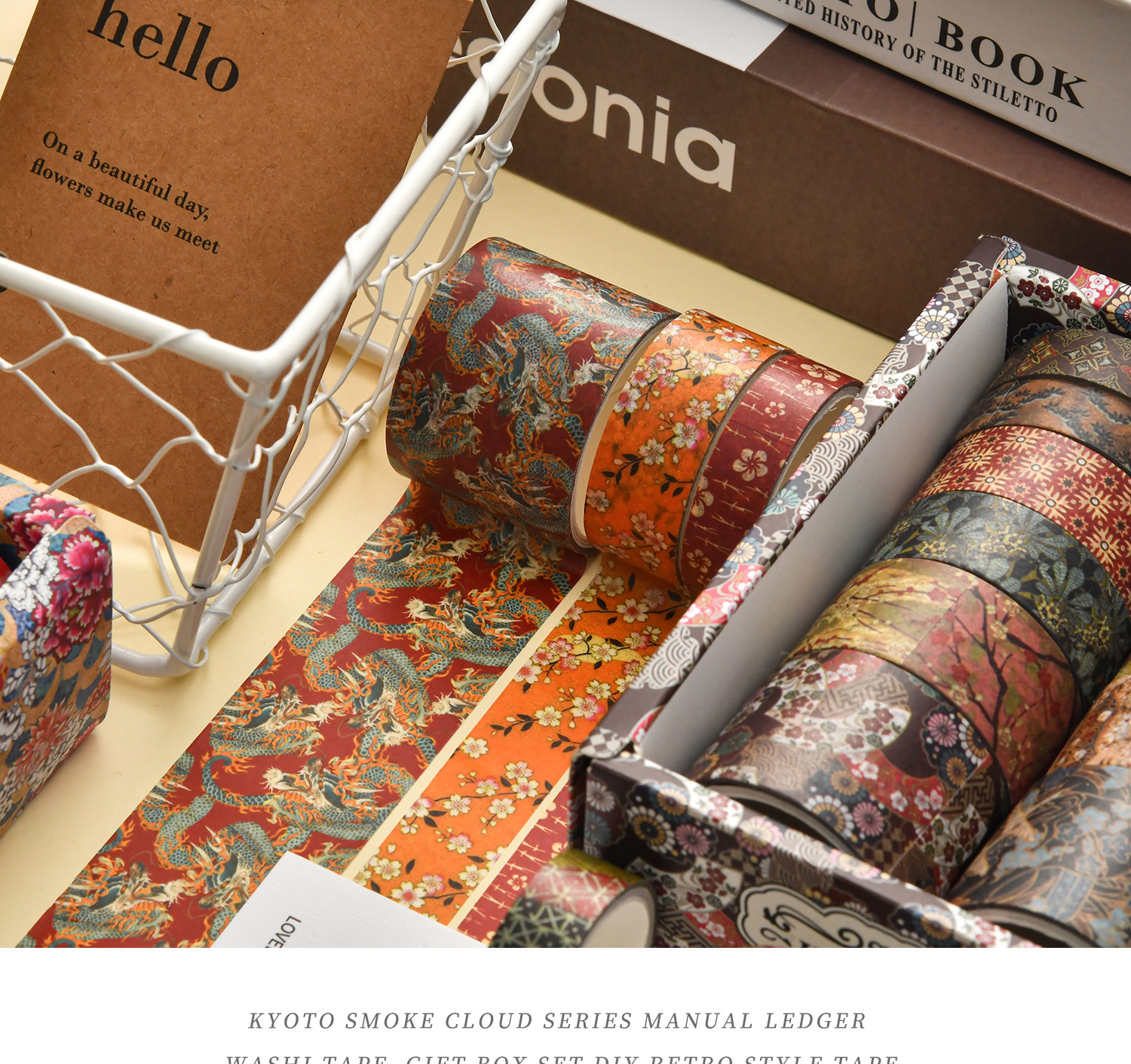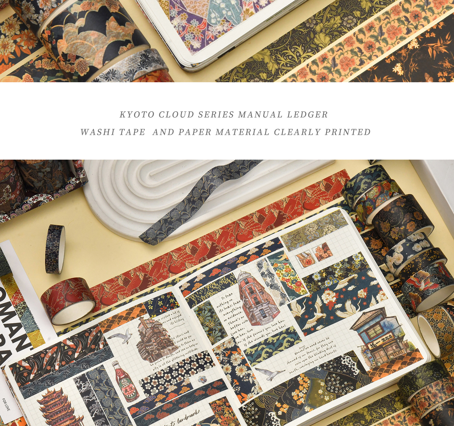 京都煙雲シリーズ手帳テープと紙不乾性テープ絵手帳テープ大背景素材紙テープ