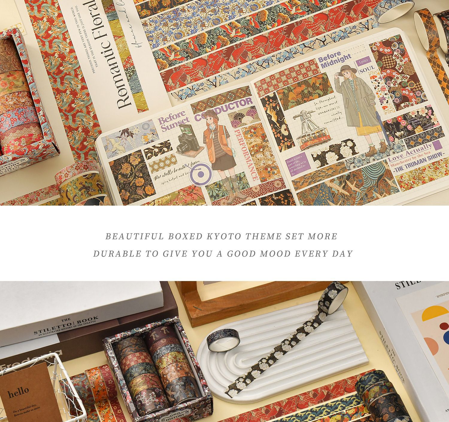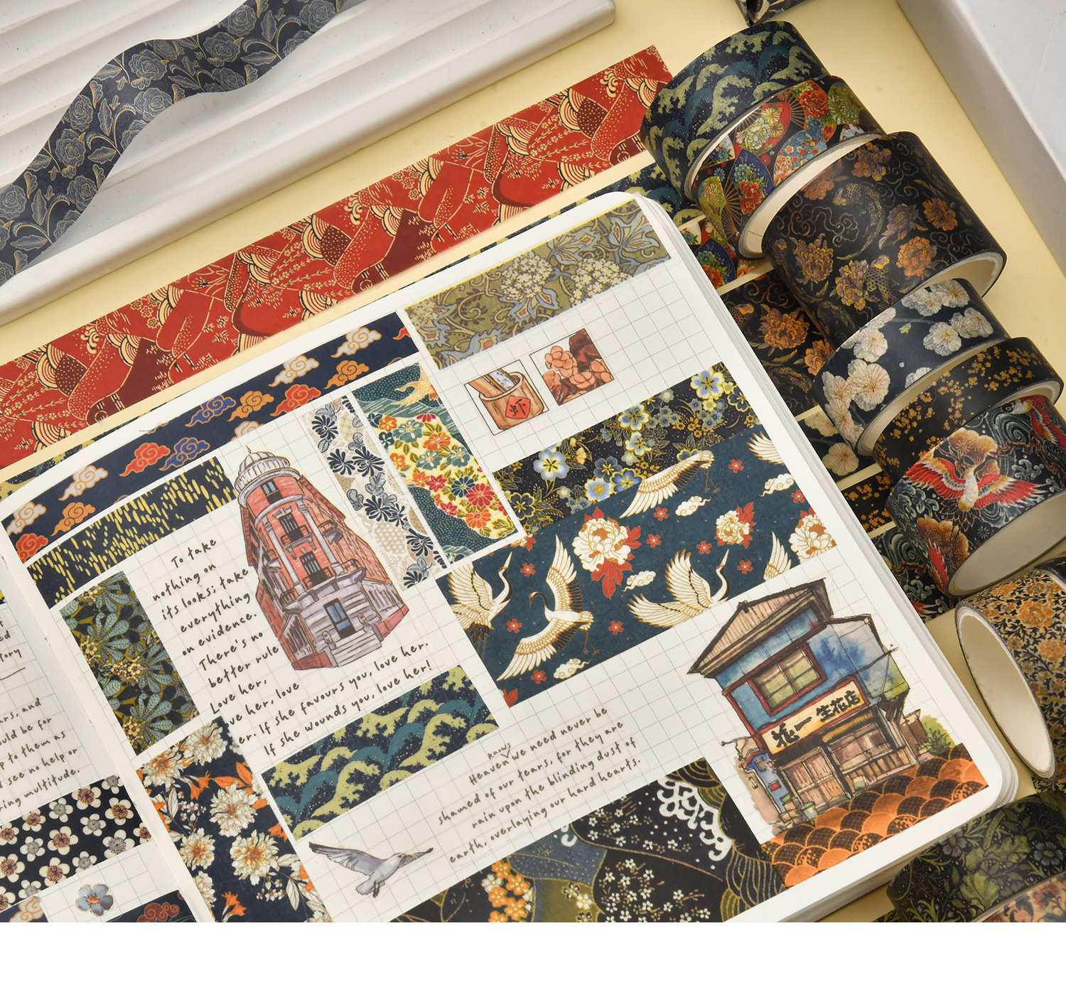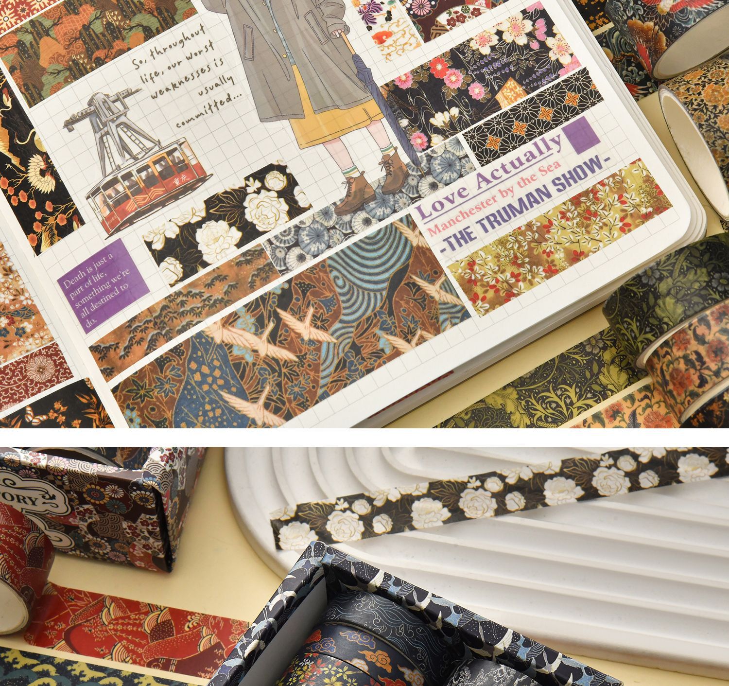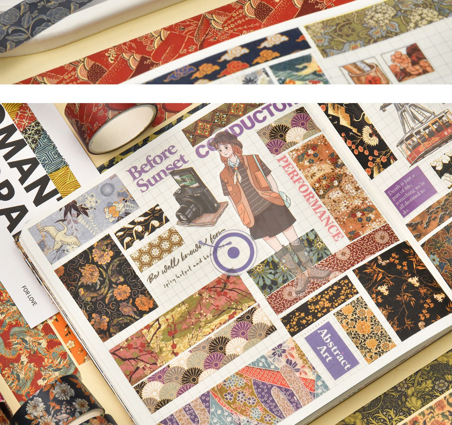 京都煙雲シリーズ手帳テープと紙不乾性テープ絵手帳テープ大背景素材紙テープ