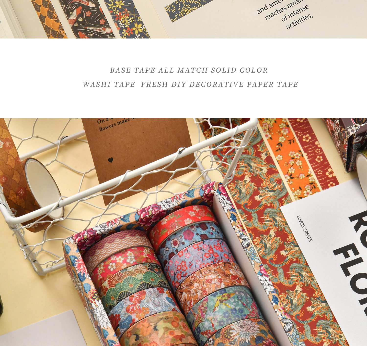 Ins清新シンプル春花ロマンチック箱入りと紙テープ日常手帳DIY装飾ステッカーテープ