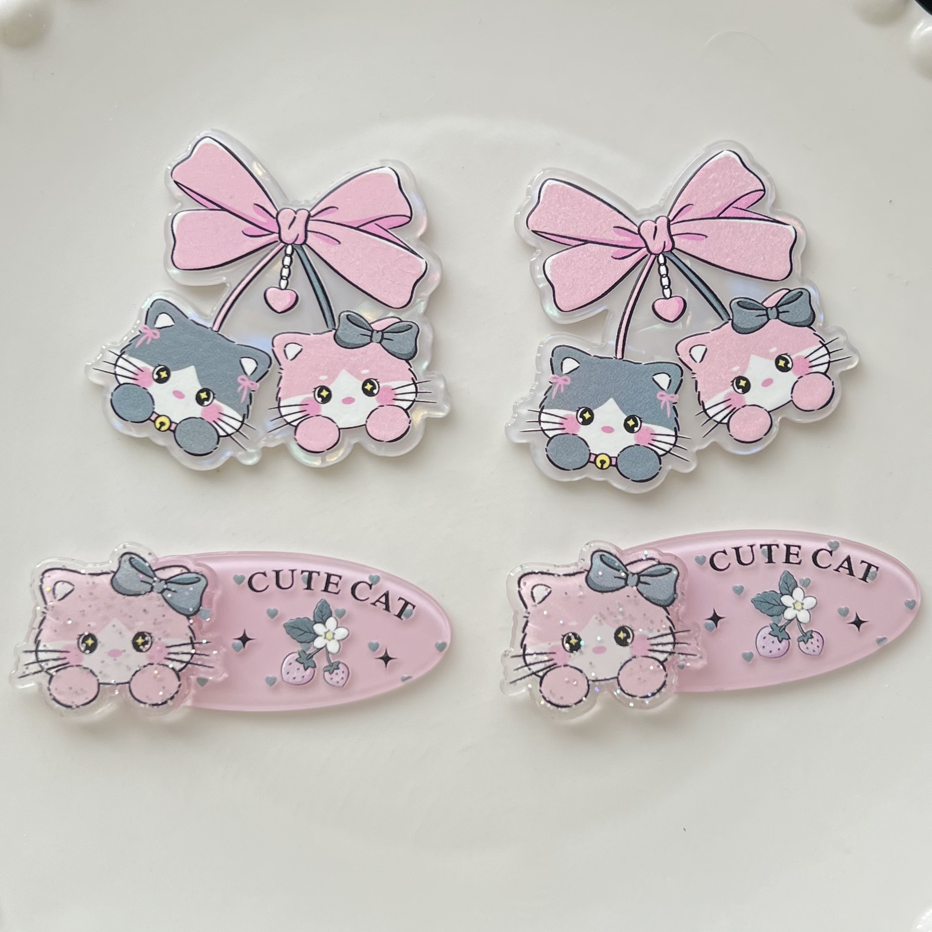 趣味ピンク細粉子猫アクリル漫画diy頭飾り携帯ケース装飾洞靴部品バッチ髪飾り