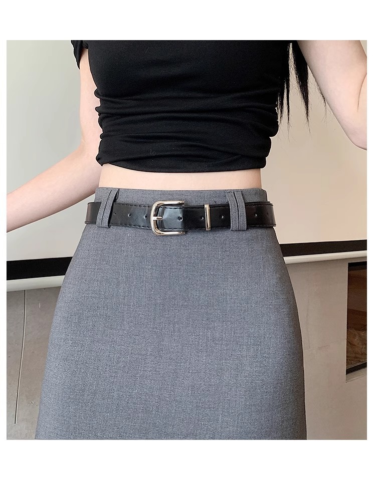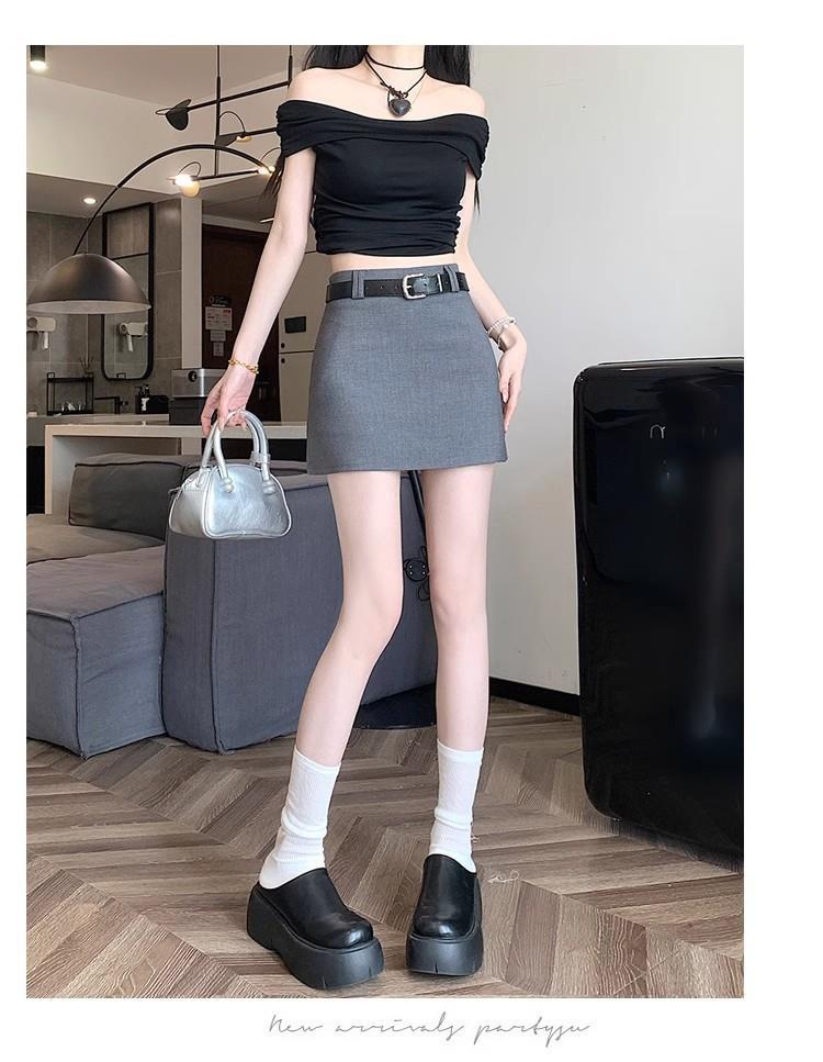 灰色のスーツの半身のスカートの女性の2024の新型の春夏の項の高い腰の小さい人はa字を合わせて一歩お尻のスカートを包みます。