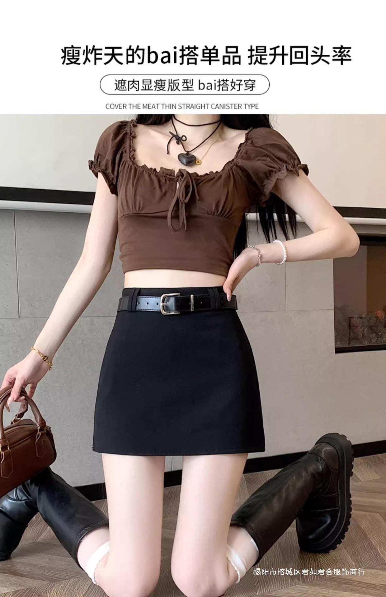 スーツグレースカートレディース2025年夏新作ヒップカバーショートスカートブラックハイウエストショートスカート
