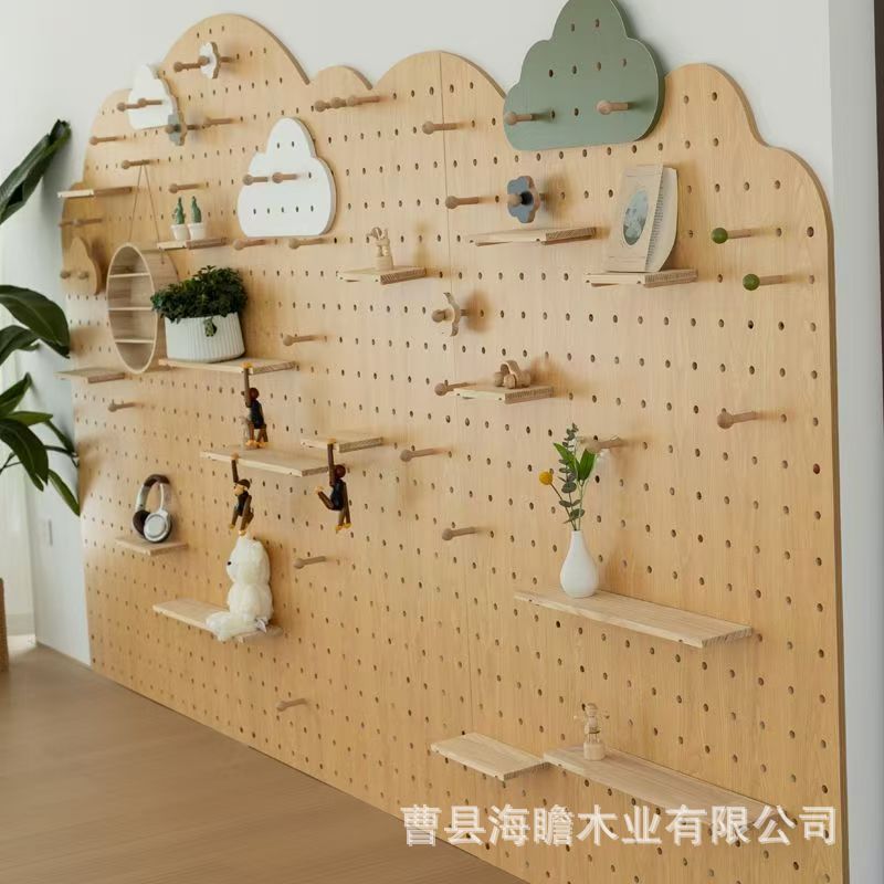 木质洞洞板置物架玄关墙面装饰架入户隔板收纳架云朵壁挂式洞洞板