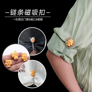 圆形强磁吸扣裤腿改短神器通用型t恤收边袖子变短调节扣防掉链条