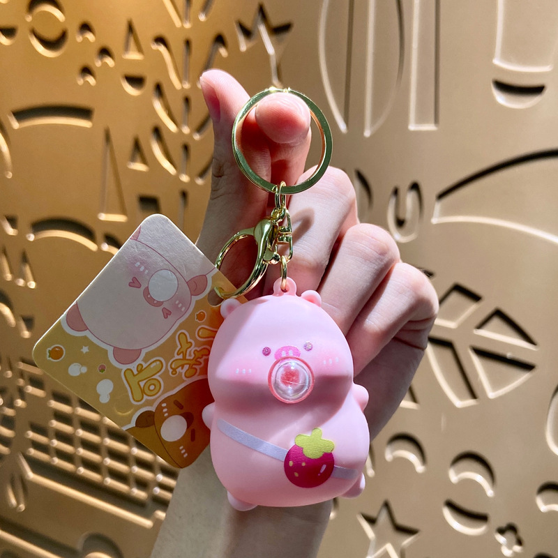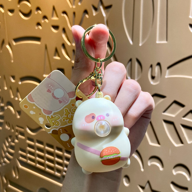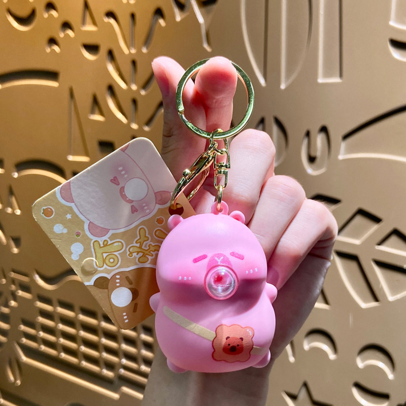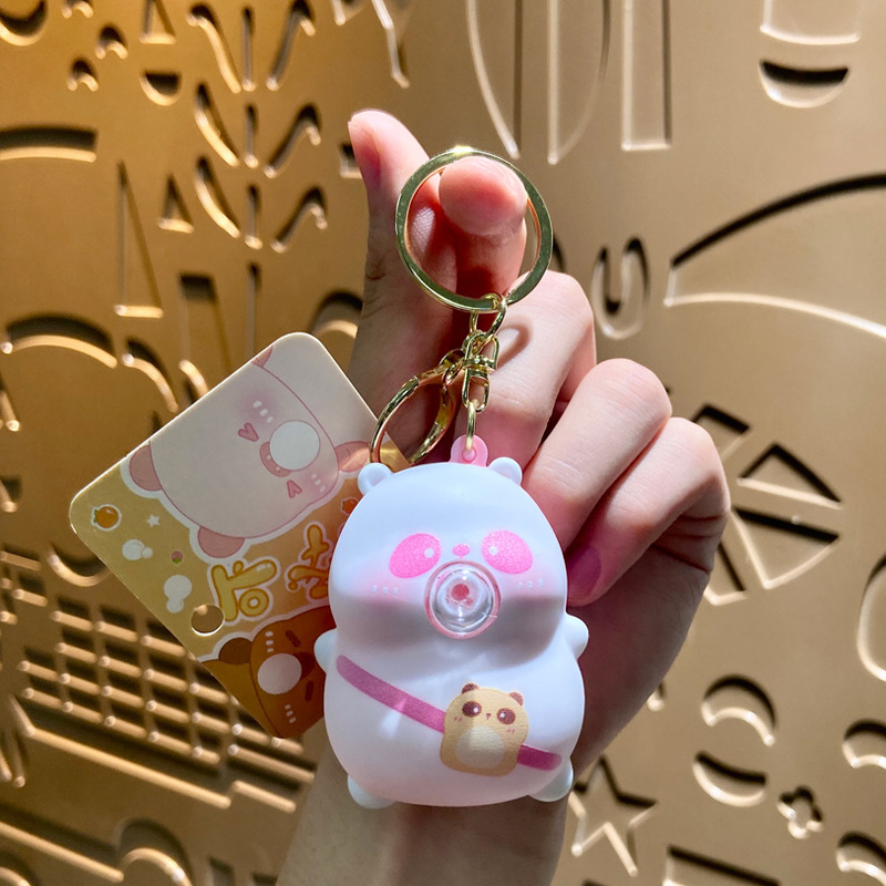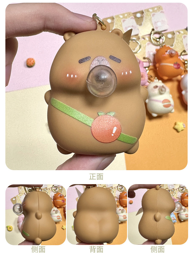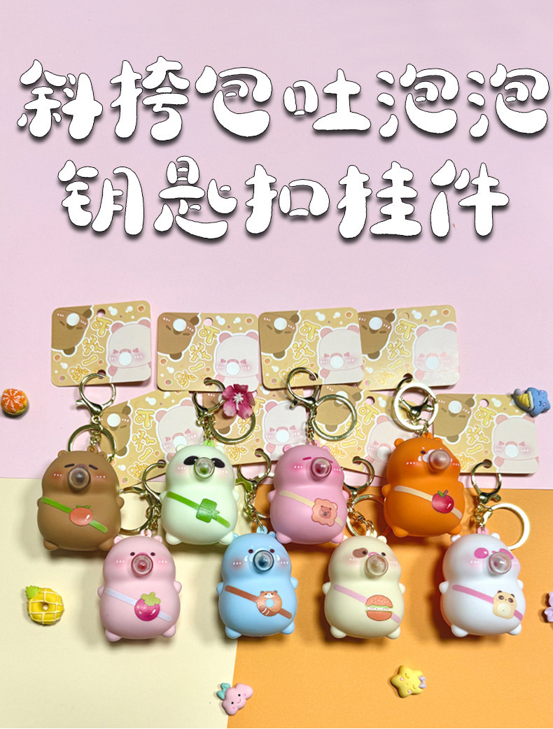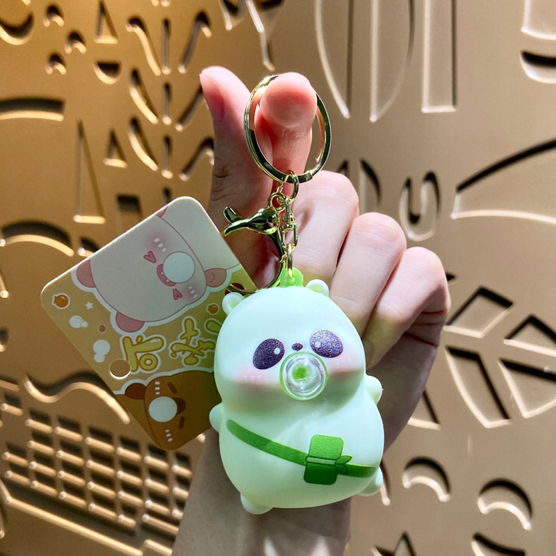 泡を吐くキーホルダーの正規版は、ストラップを遊んでいる子供のおもちゃをつまんで楽しむ男女のかばんを飾る必要がある