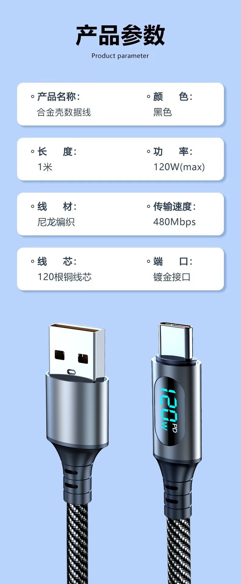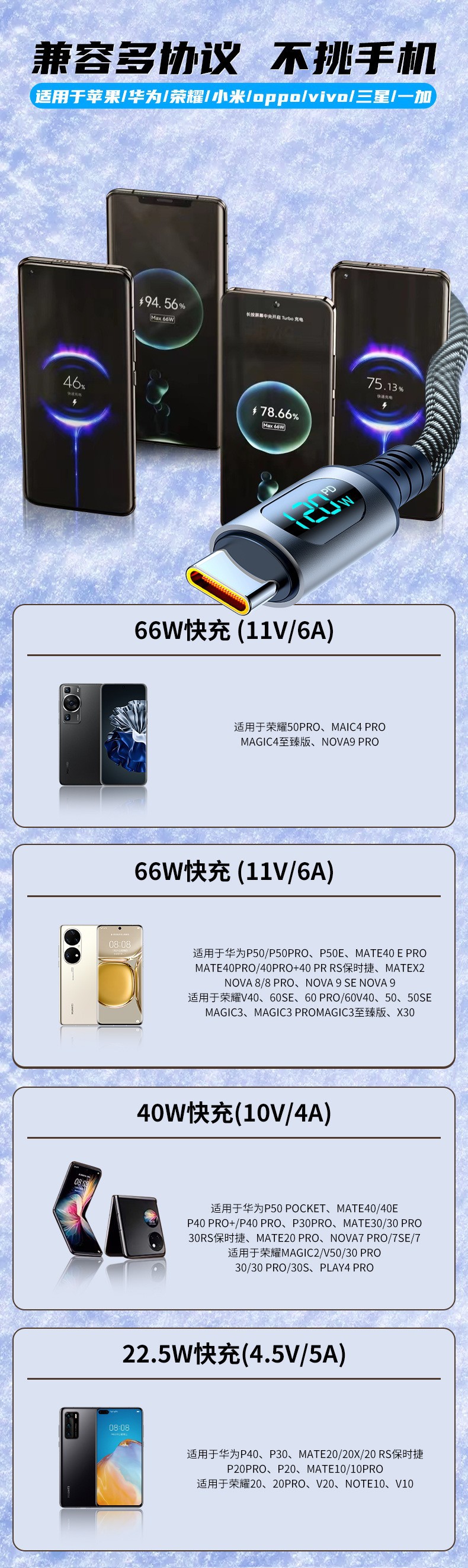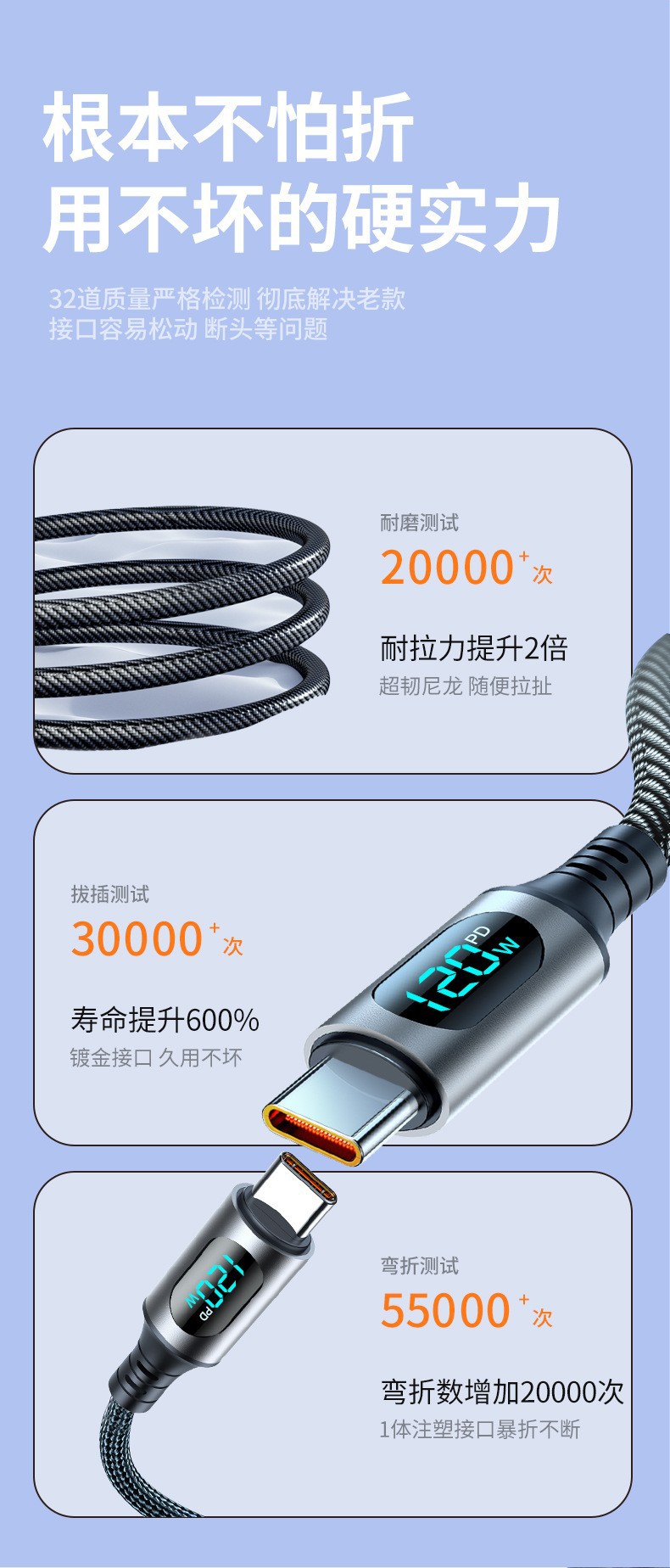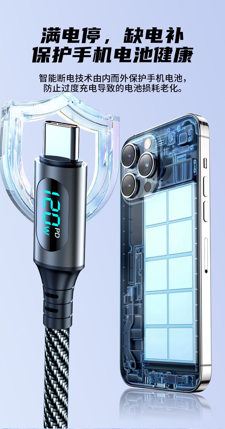 携帯電話タブレット充電ケーブル共通100Wデジタル超高速充電ケーブルTypec全互換サポートledスクリーン