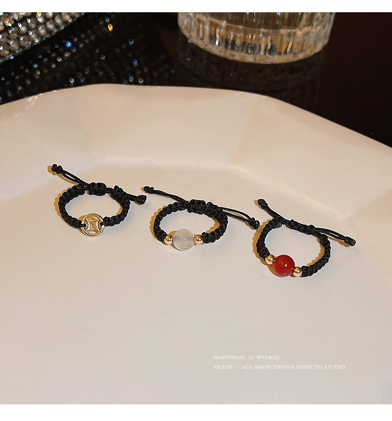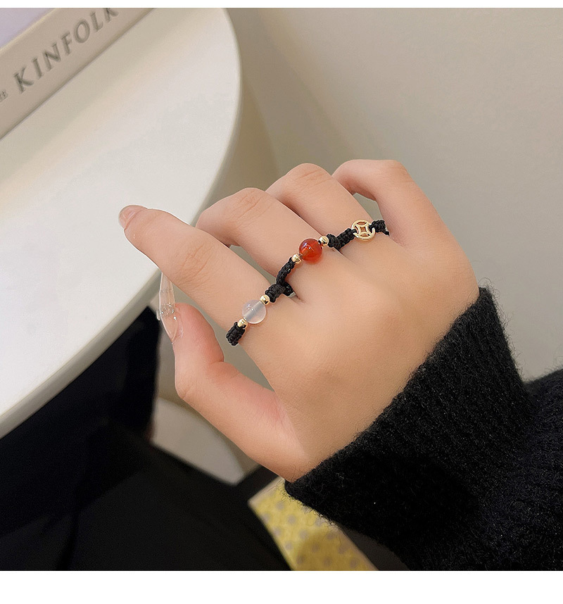 新しいアカシアの赤豆の赤い瑪瑙の銅のお金は指輪の女性の大衆の設計のinsの高い顔の値のカップルの親友の贈り物を編みます。