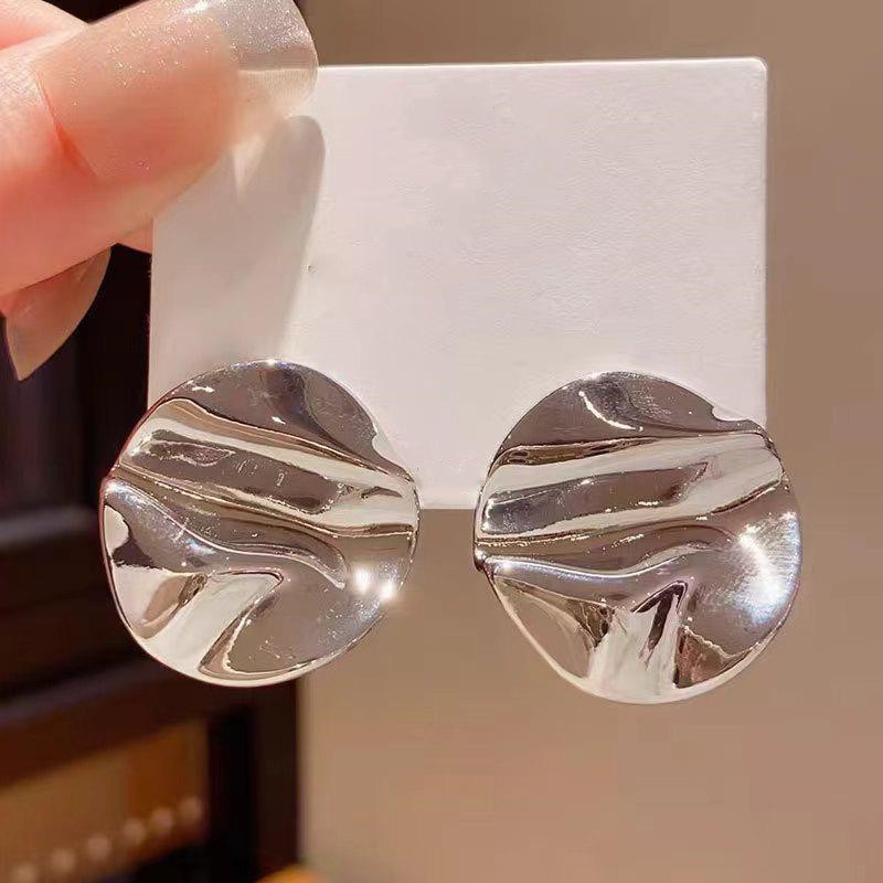 精致褶皱圆形耳钉女高级感简约冷淡风外贸爆款气质耳环耳钉女批发