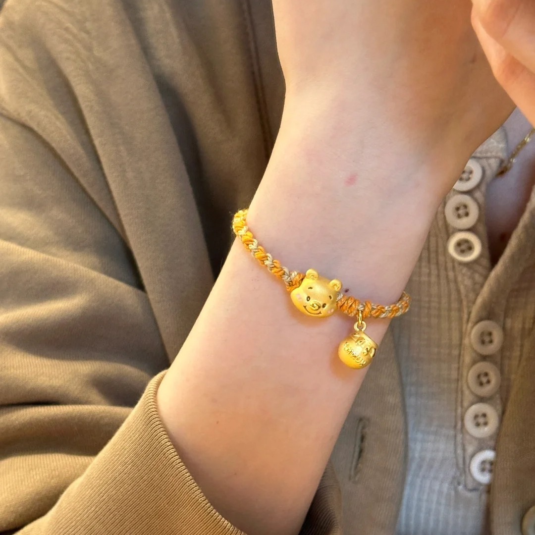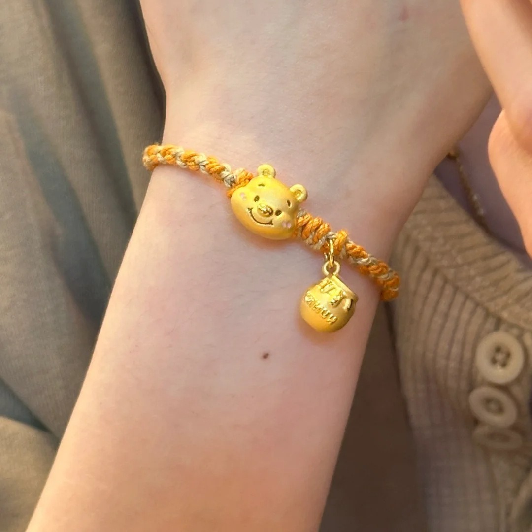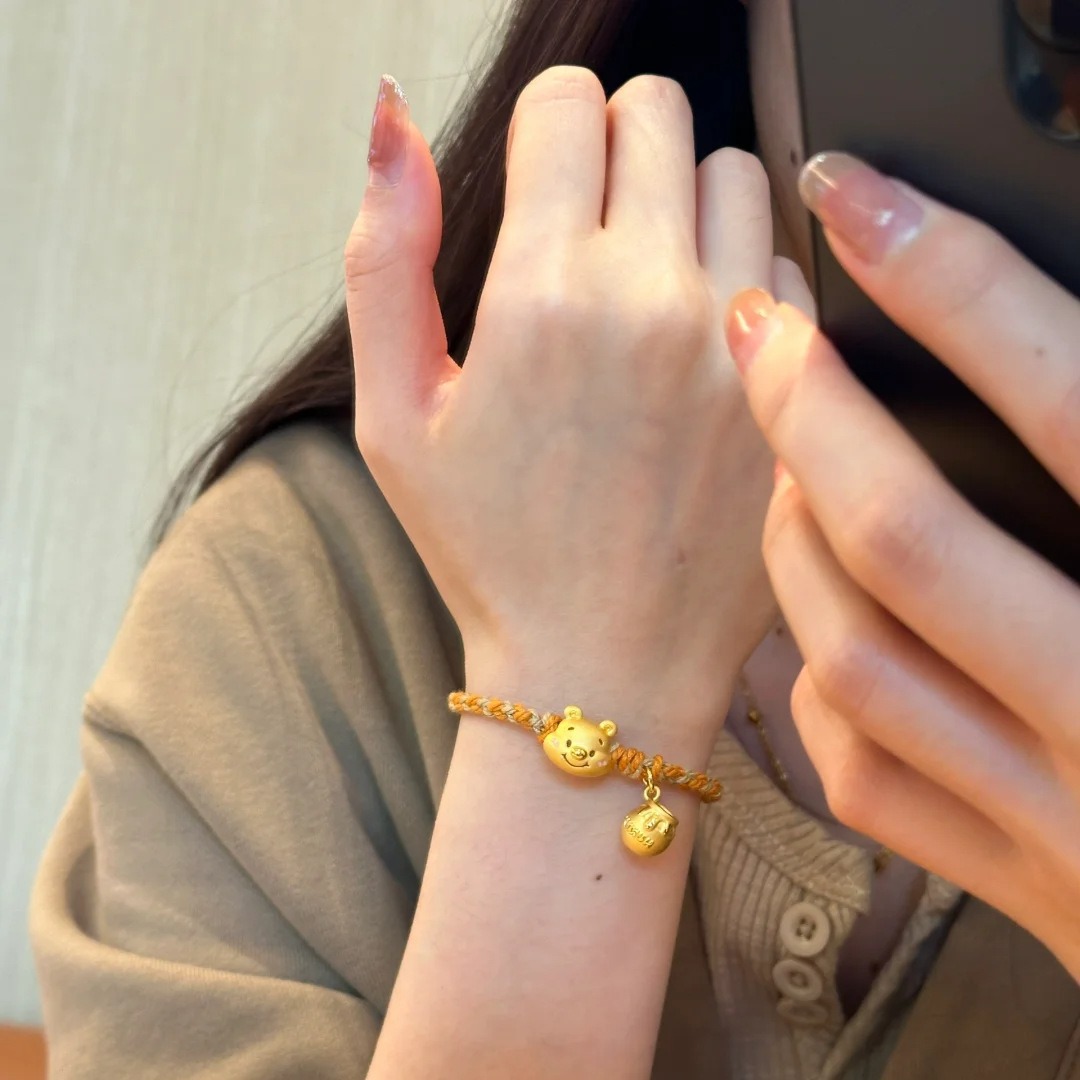新商品の漫画の金色の維尼熊のペンダントのブレスレットの女性のファッションのかわいい大衆の甘い手編みの縄
