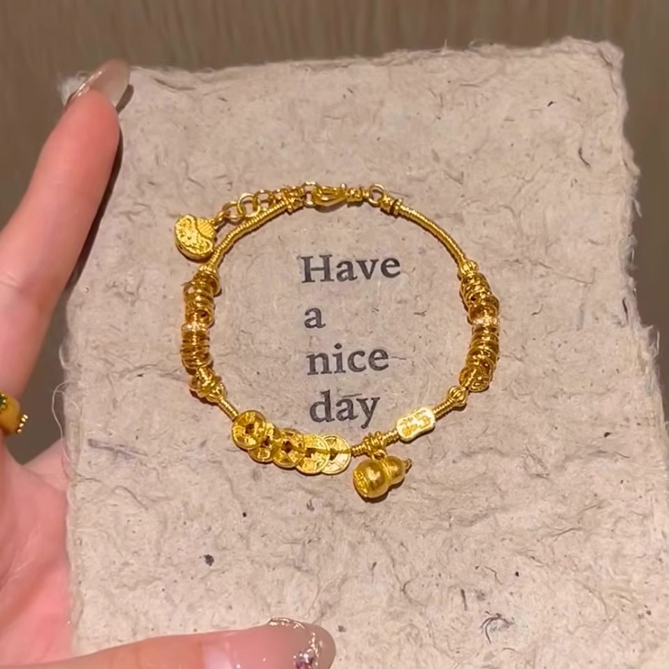 古法五帝銭盤はブレスレットの新しい中国式の金色のヒョウタンの手を巻いてレトロな元宝のペンダントのブレスレットを飾って彼女に送ります。