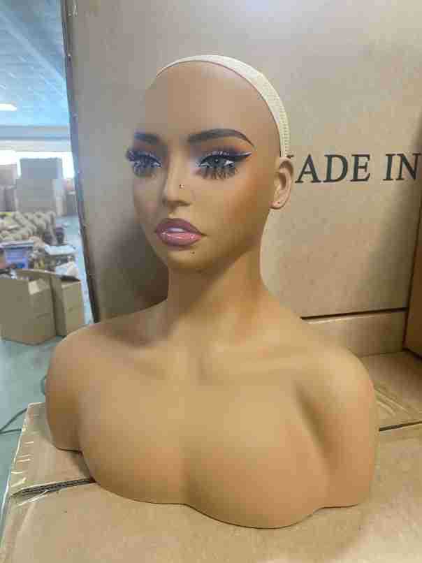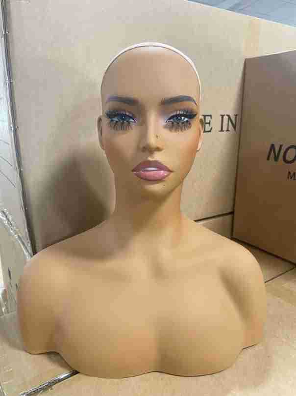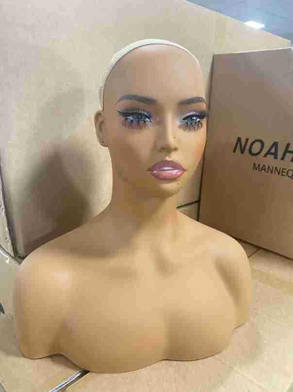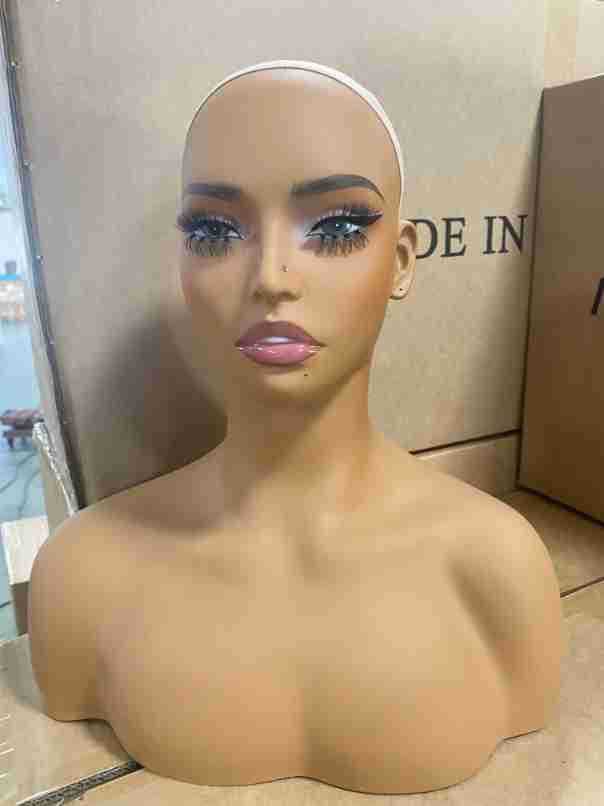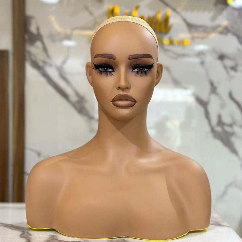 ウィッグ展示用マネキンヘッド 欧米風両肩頭模型 イヤリングネックレス撮影用 人工肌色PVCマネキン