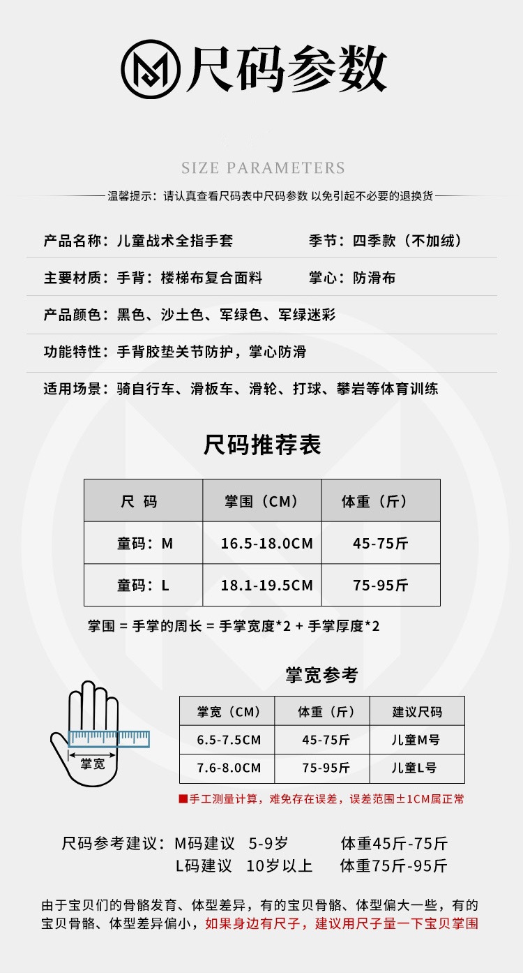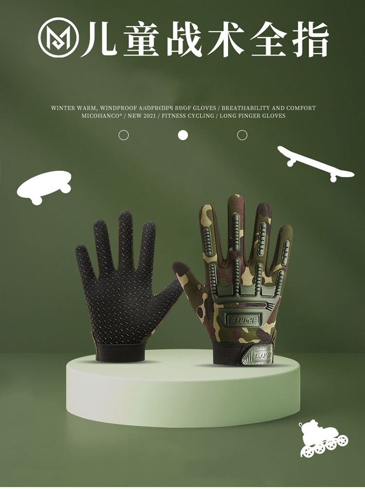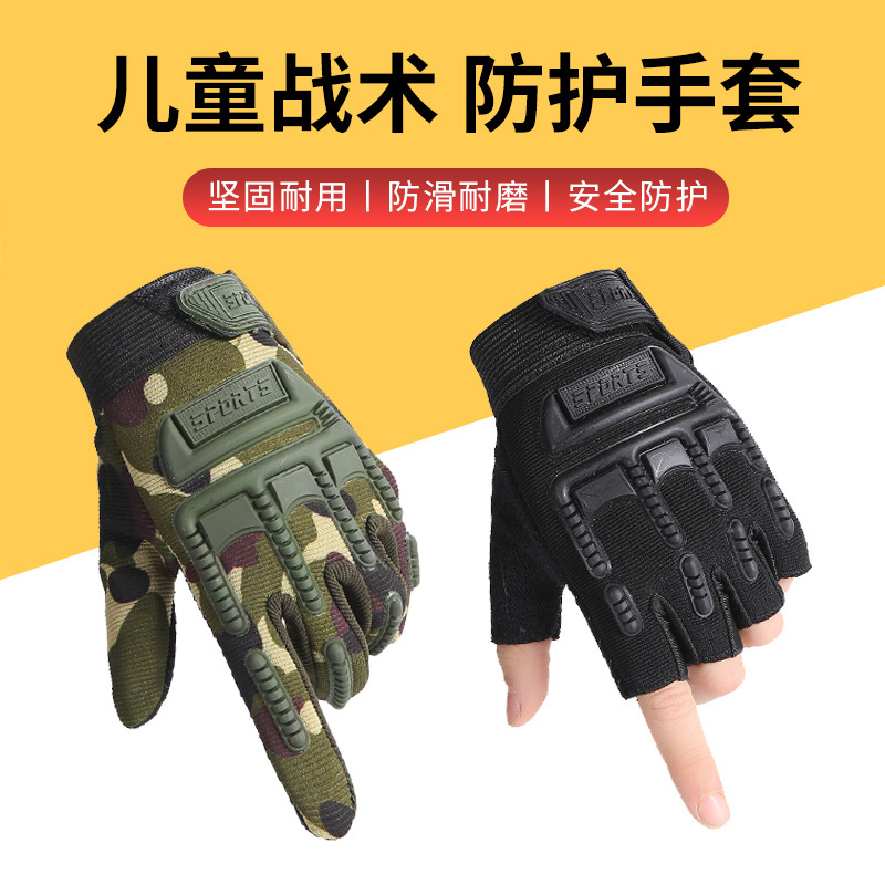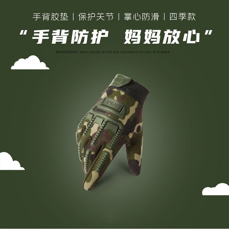 儿童手套全指半指春秋薄保暖战术骑行自行车防护防滑运动健身迷彩