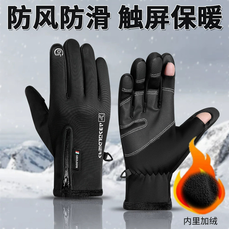 骑行手套冬天男士户外运动骑车防滑防水加厚防寒保暖露指触屏手套