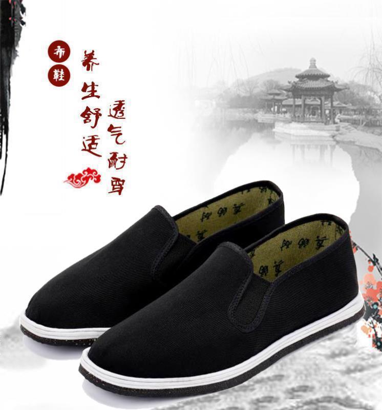 古い北京布靴メンズ手作り千層ソール秋フル布ソフトソール通気性スリッポン紳士靴布底靴快適
