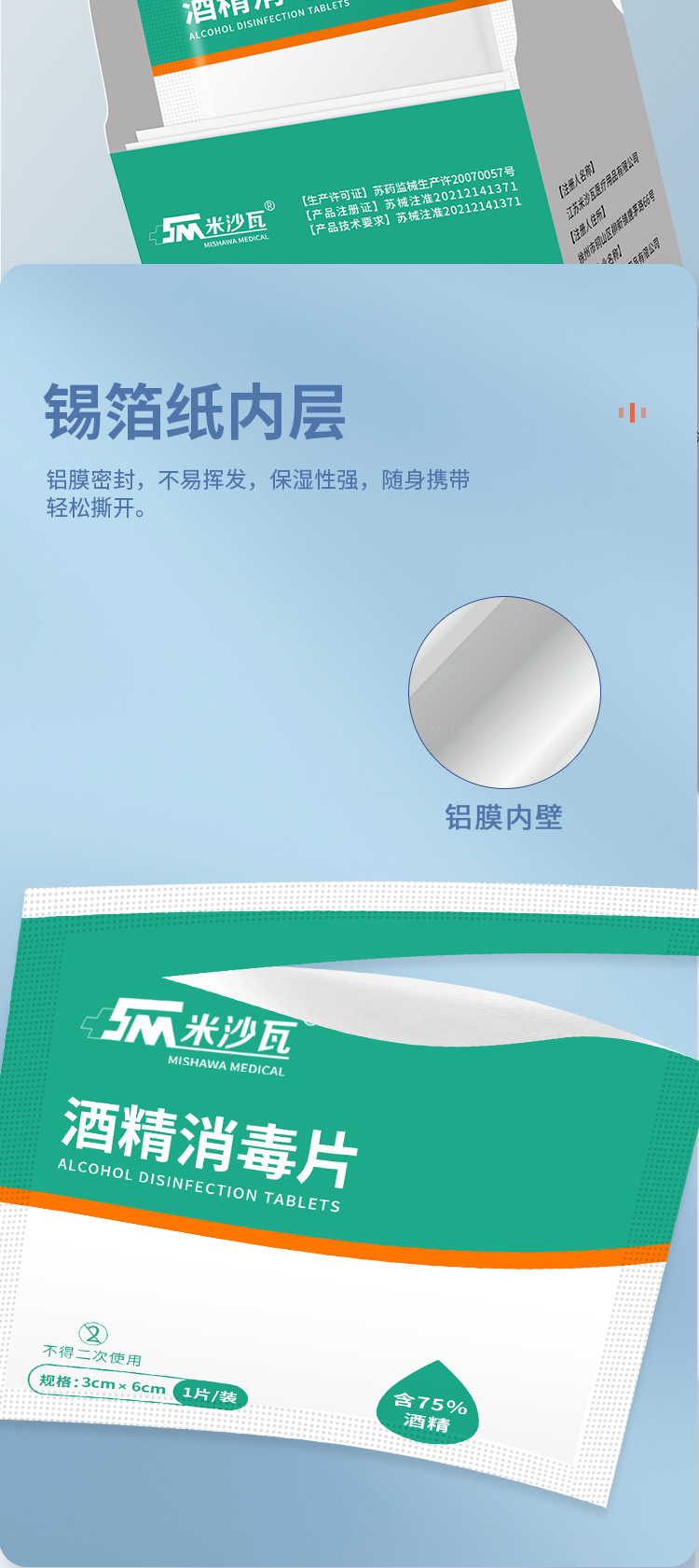 ミサワアルコール消毒綿片消毒ウェットティッシュ75% アルコール携帯電話スクリーン拭き3cm * 6cm50枚入