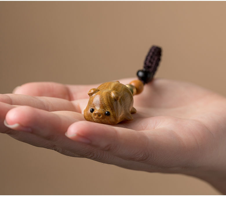 花梨木彫り手彫り品 ラオス産手彫り品 彫刻工芸品 紫檀文玩置物 黒紐付き