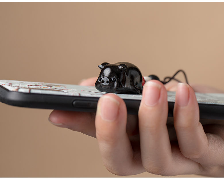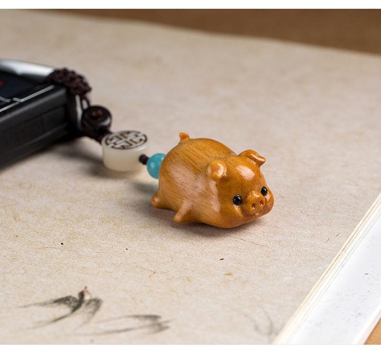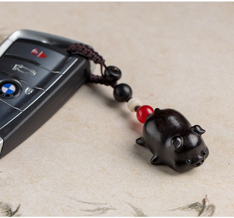 小萌豚自動車のキーホルダーを結びます。