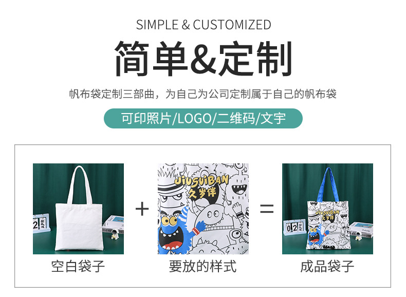 キャンバスバッグカスタム空白DIYシングル肩手提げ学生ズックレジ袋塾広告環境保護綿布袋