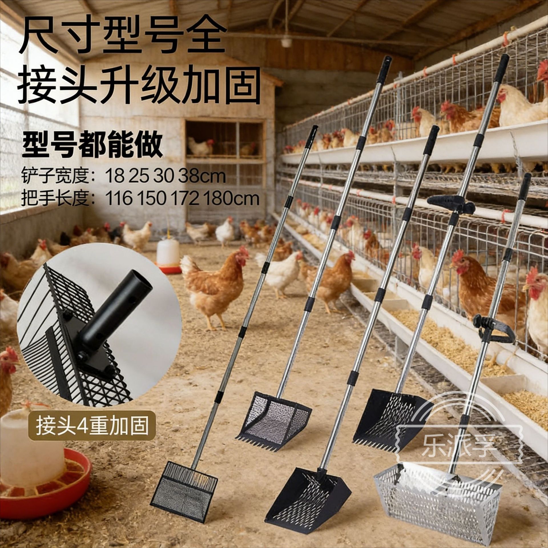 特大号不锈钢鸡粪铲手柄4节加长手柄金属鸡粪铲鸡舍鸡粪清洁工具