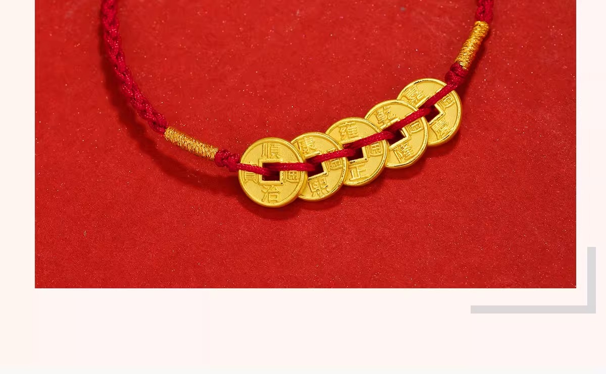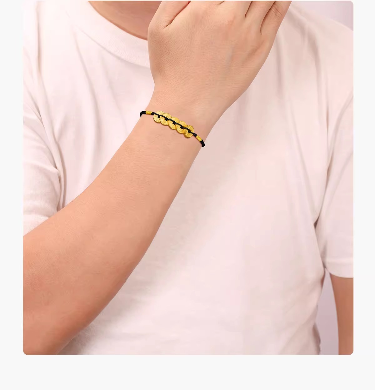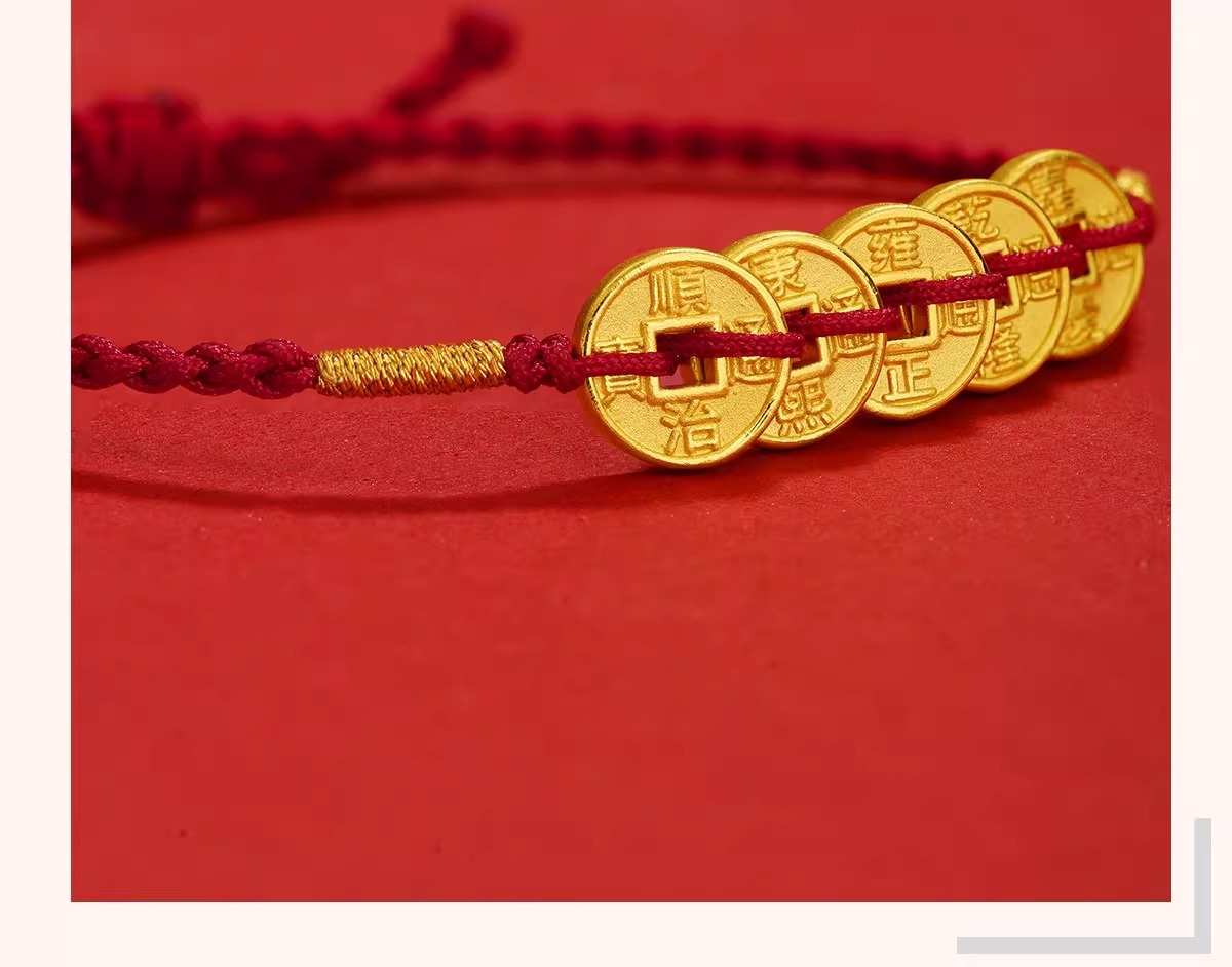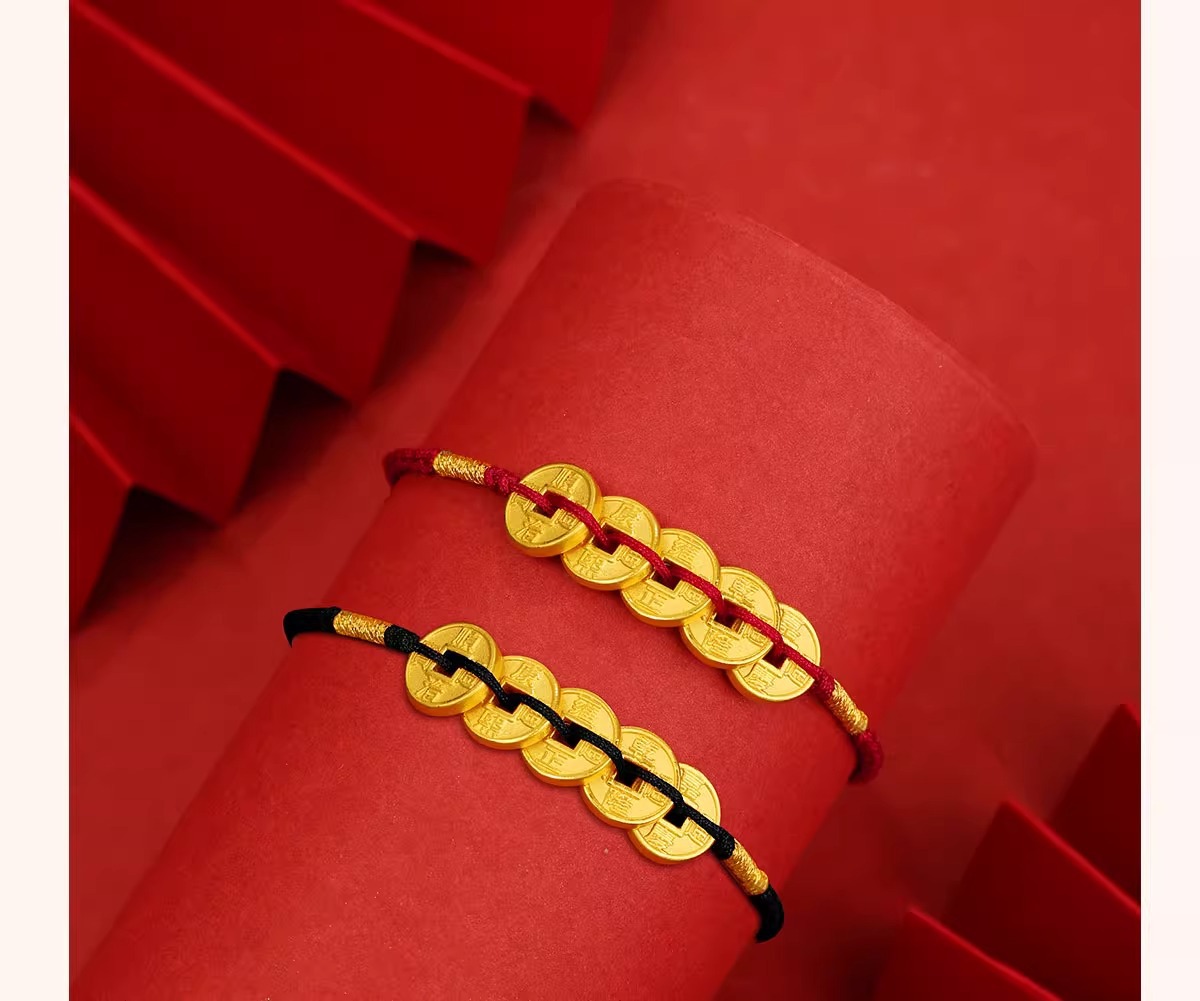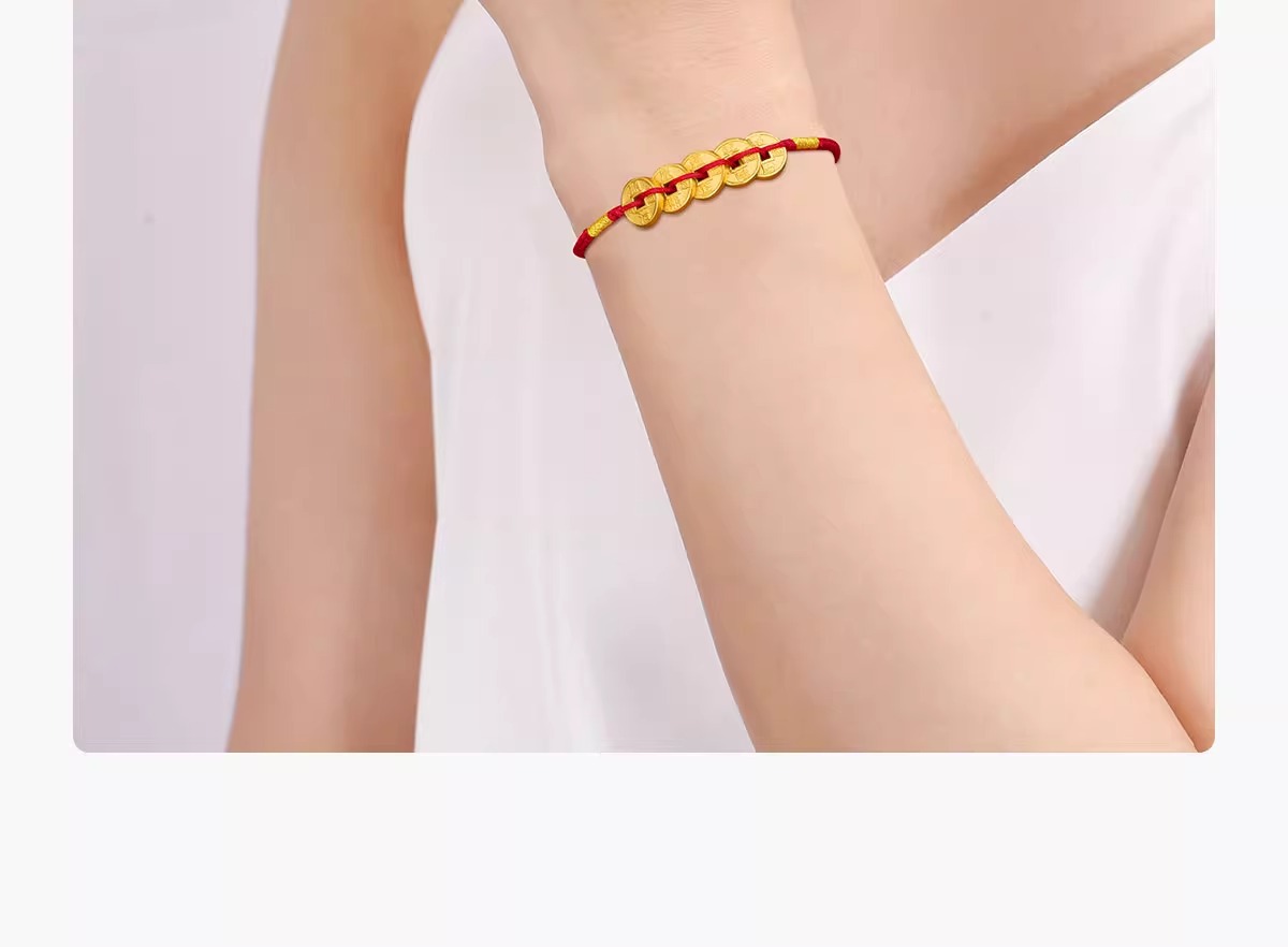九鳳祥999純金ブレスレット金銀包金 黄金五帝銭編み込みブレスレット本命年赤紐編み込みギフト