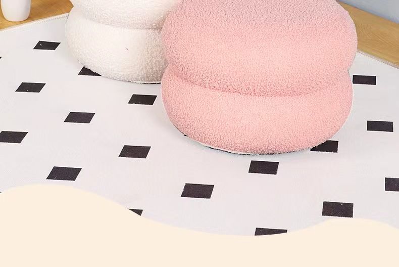 低めのスツール、インターネットセレブのフットレスト、クリーム色のスタイル、取り外し可能、洗濯可能、積み重ね可能、リビングルームの子供用ソファ、ラムウールの丸いスツール、靴交換用スツール