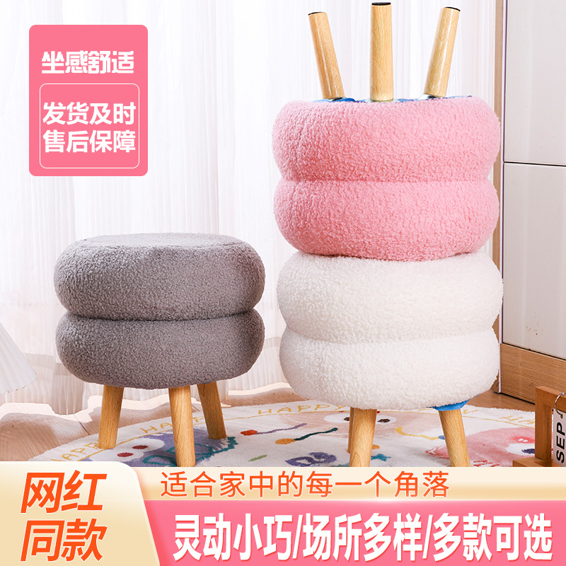 客厅凳子羊羔绒板凳家用圆凳门口网红儿童沙发矮凳简约坐墩换鞋