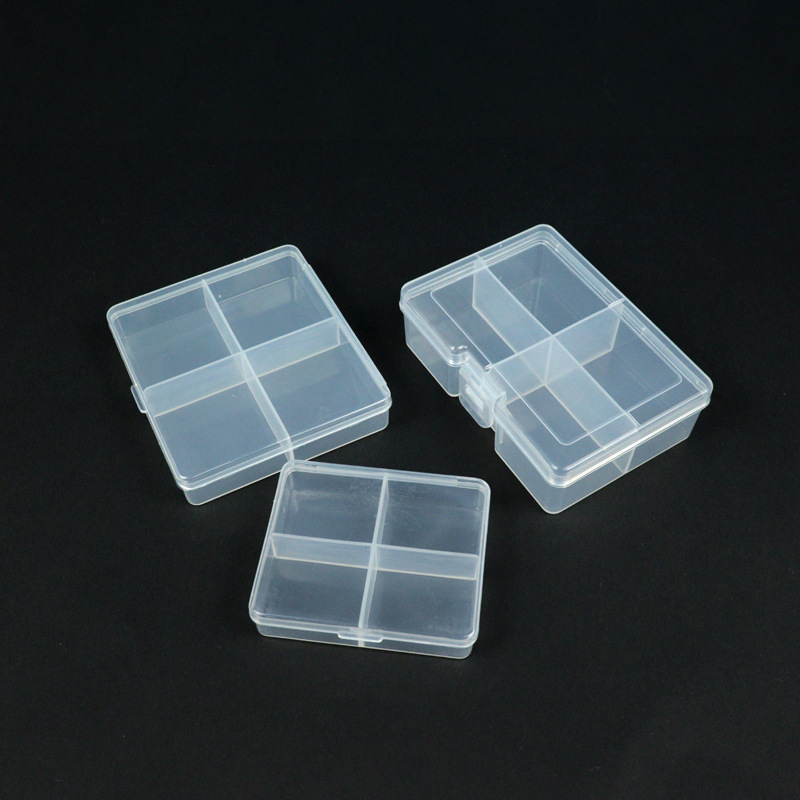 4格透明pp塑料盒文具零件包装盒饰品展示首饰盒桌面收纳盒渔具盒