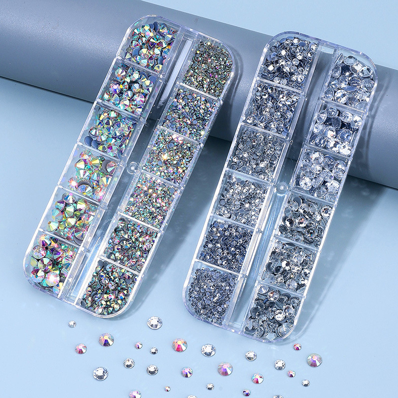 クロスボーダー高級ラインストーンセット12グリッド、混合サイズ、熱溶着接着剤付きラインストーン、服飾用ラインストーン、DIY、保温カップデコレーション