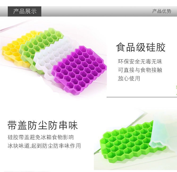家庭用製氷氷氷シリコン金型37格蜂の巣食品級シリコン氷格金型蓋付きハニカム氷格