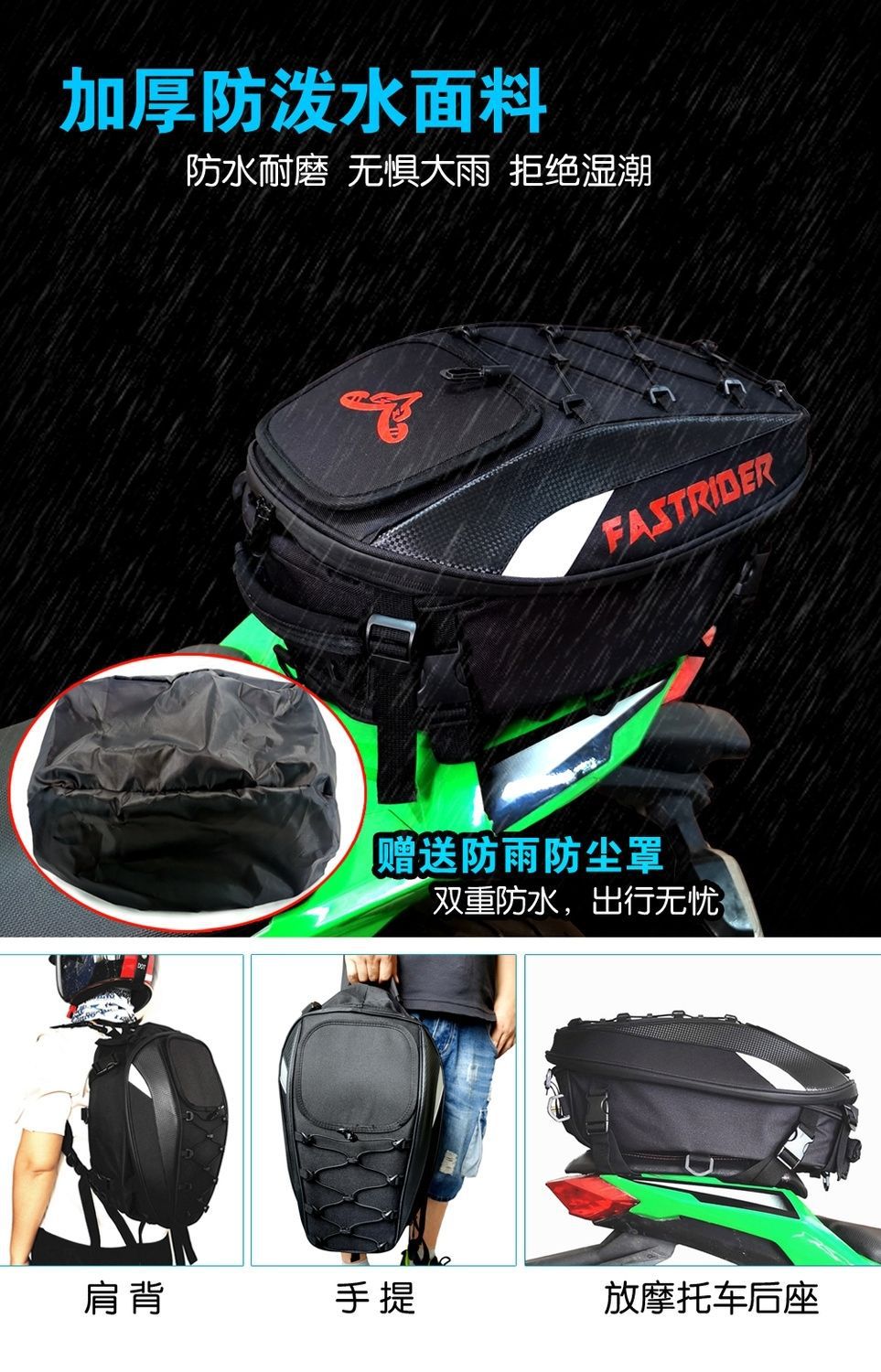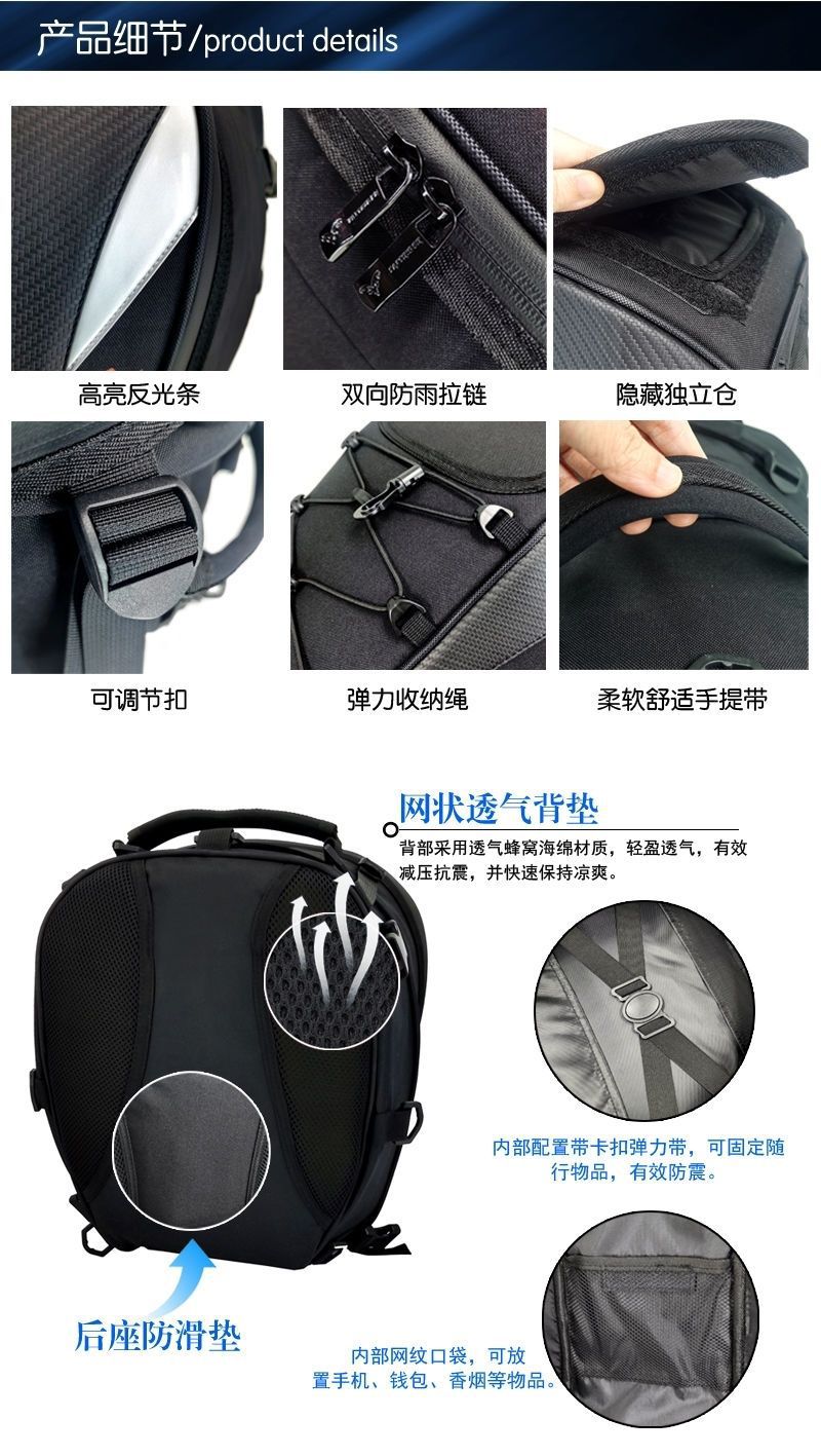 现货新款摩托车机车头盔包双肩背包骑士骑行尾包防水后座摩旅