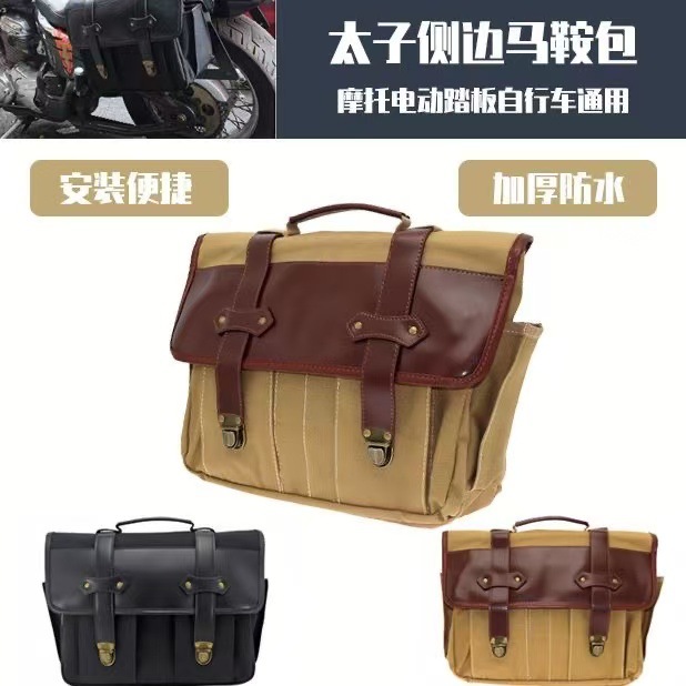 摩托车帆布复古边包斜挎防水机车公文包骑士旅行邮差包骑行配件