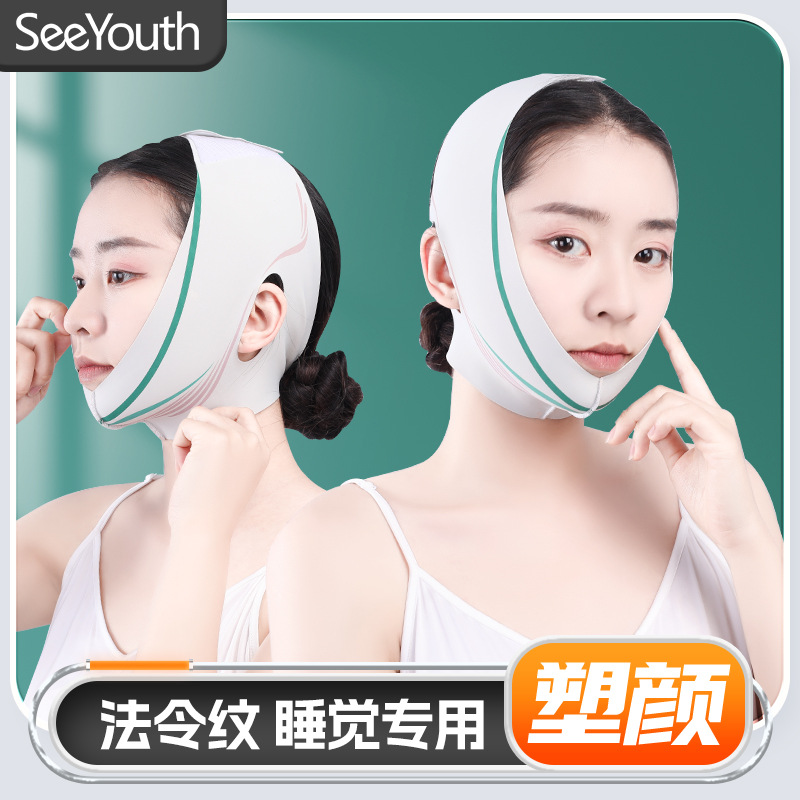 SeeYouthグリーンスポーツマスクすっぴんティラー包帯反重力睡眠用vフェイスティラー雕法令