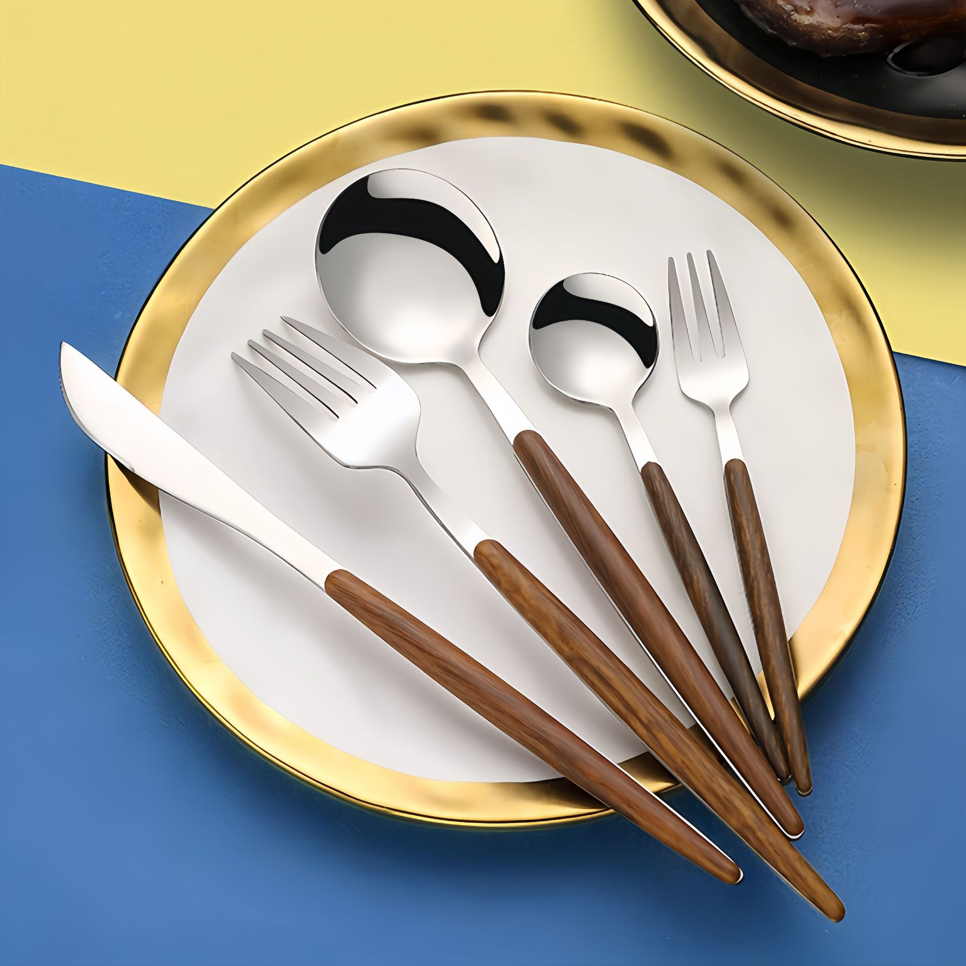 430不锈钢仿木刀叉勺 批发酒店家用牛排刀叉燕窝礼品甜品咖啡勺子