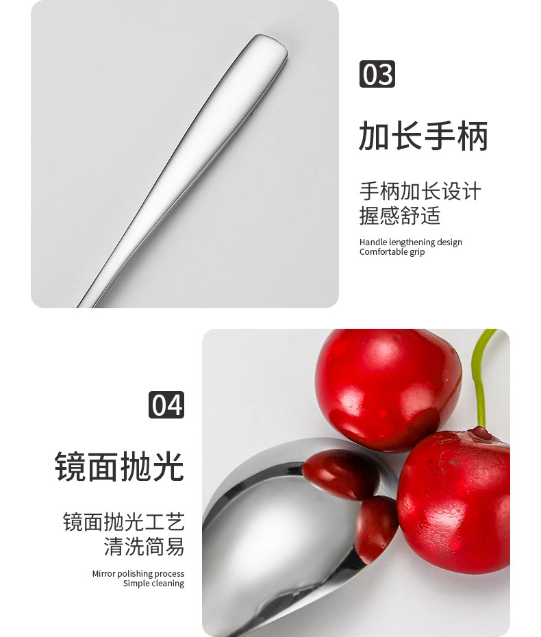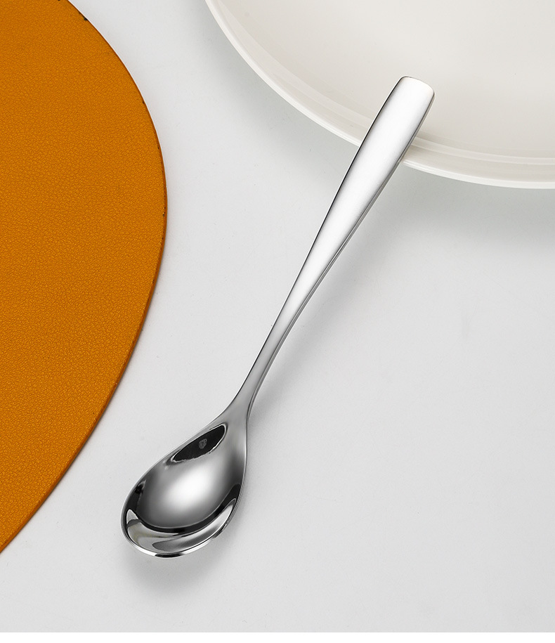 316不锈钢圆头平底勺 批发酒店家用加深礼品调羹儿童喝汤甜品勺子