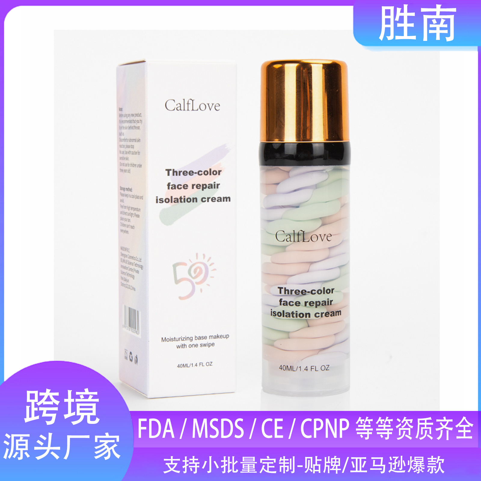 Calfloveクロスボーダー三色レインボーアイソレーションクリームは、明るい肌の保湿メイクの前に自然な裸の化粧の柔らかい肌のアイソレーションクリームを提供します