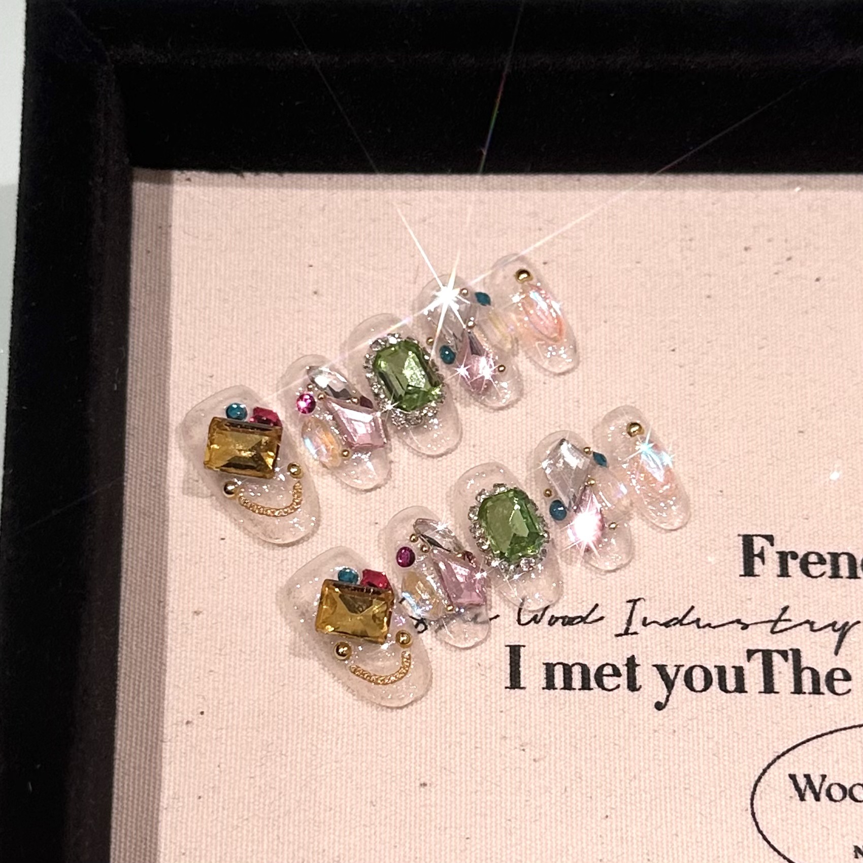 【爆闪鸽子蛋】鎏金纯手工穿戴甲高级可拆卸网红爆款重工水滴