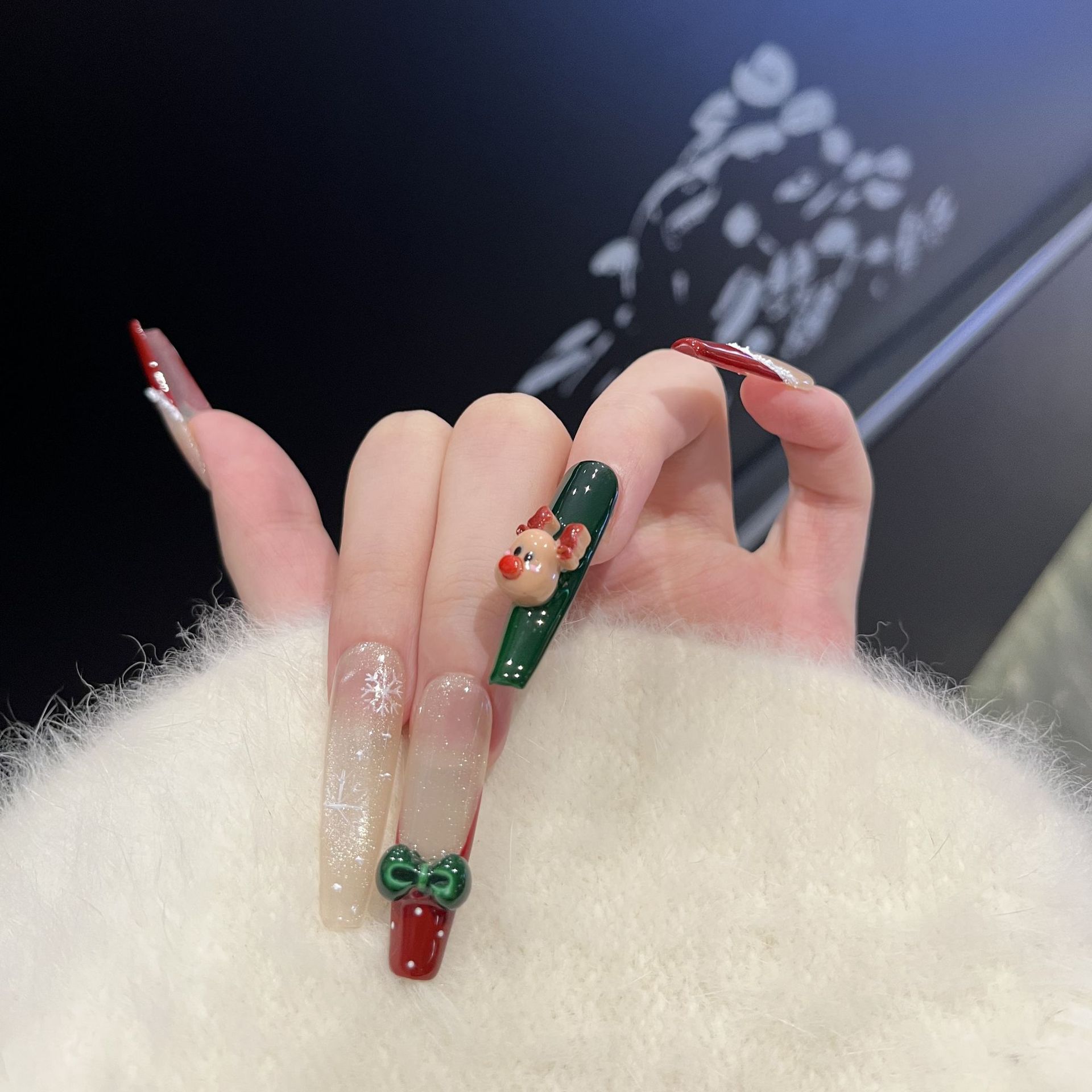 黛瑞森【礼物】圣诞节穿戴甲甲片捏捏雪人彩色石膏法式美甲假指甲