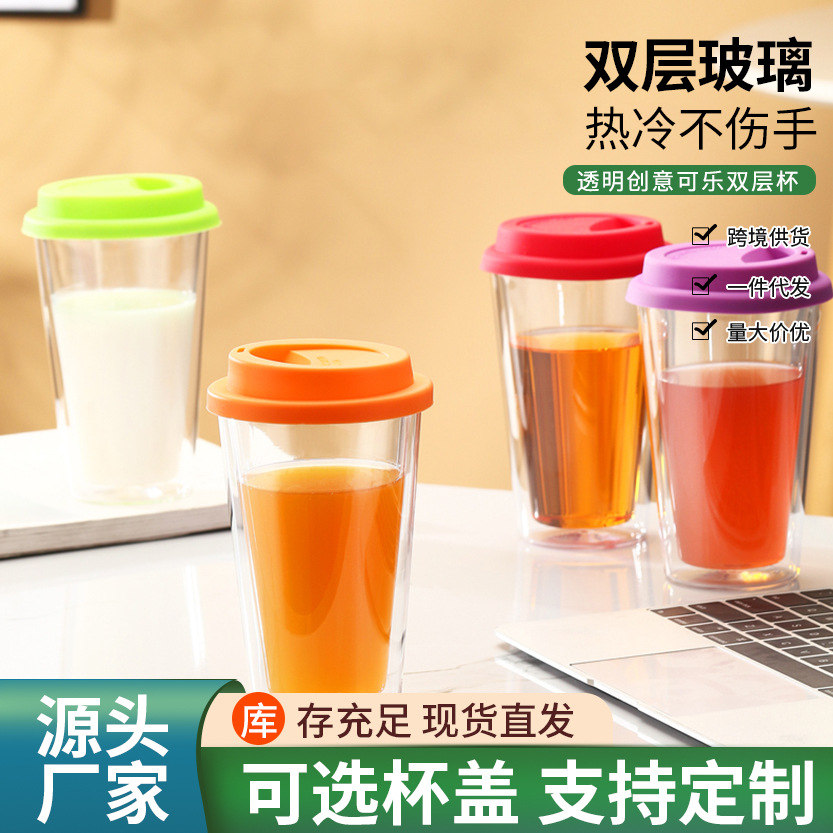 国境を越えた新しい二重ガラスコップ家庭用ポータブル透明コーラカップオフィスコーヒーミルクグラス