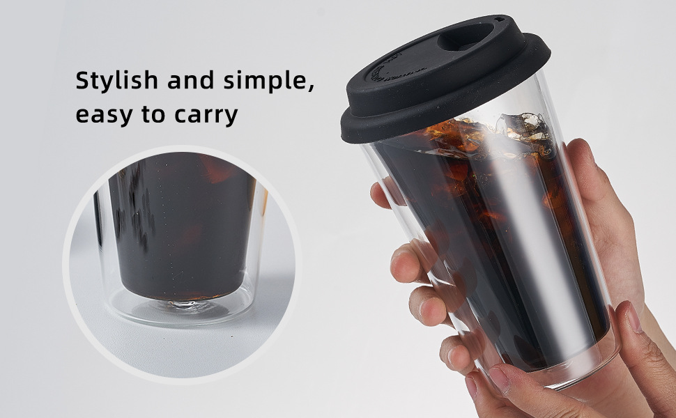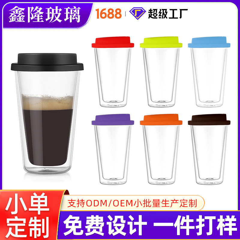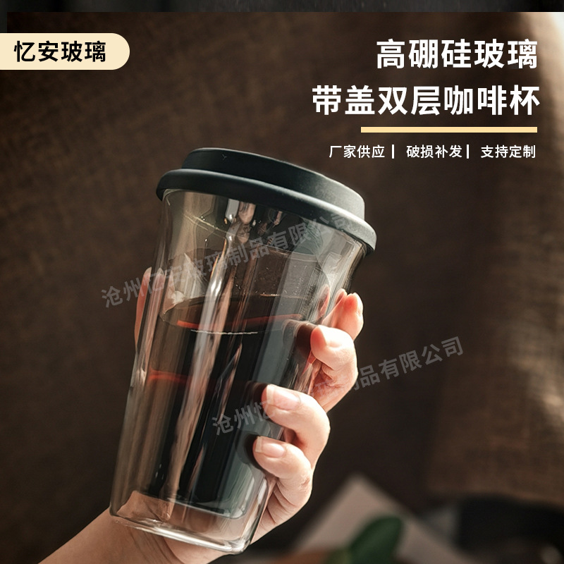二重グラス高ホウ素シリコンガラスコップ家庭用蓋付き断熱保温カップクロスボーダーコーヒーカップカスタムカップ