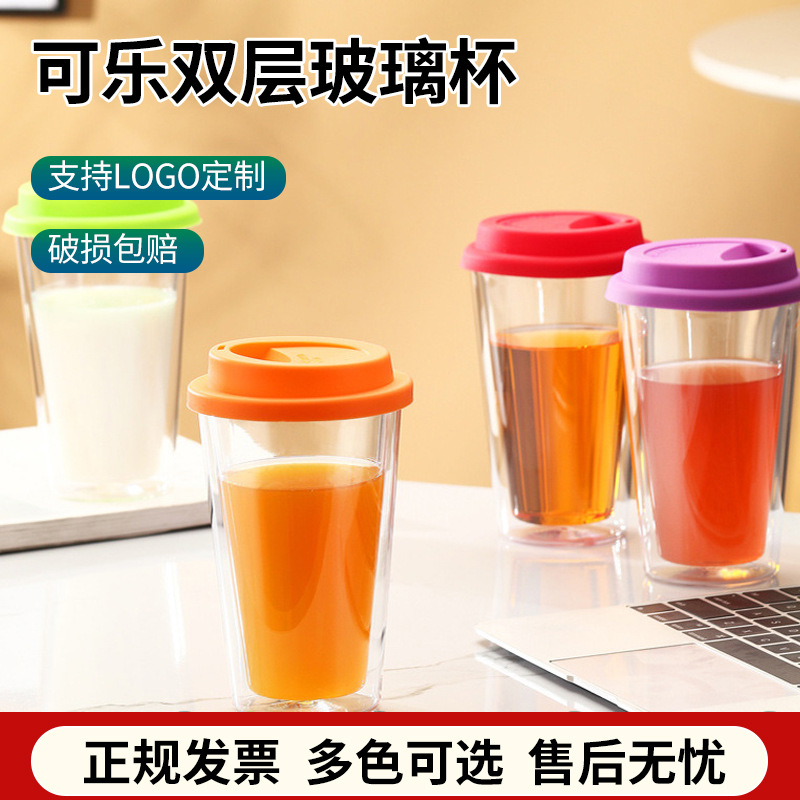 マルチカラーオプション透明ガラスクリエイティブコーラ二重層マグオフィスコーヒーカップ高ホウ素ガラスカップ