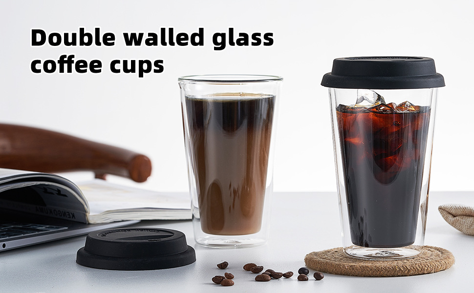 シリコン蓋付き耐熱ガラス二重構造コーヒーカップ、高ホウケイ酸ガラス二重構造断熱ウォーターカップ、蓋付きカップ